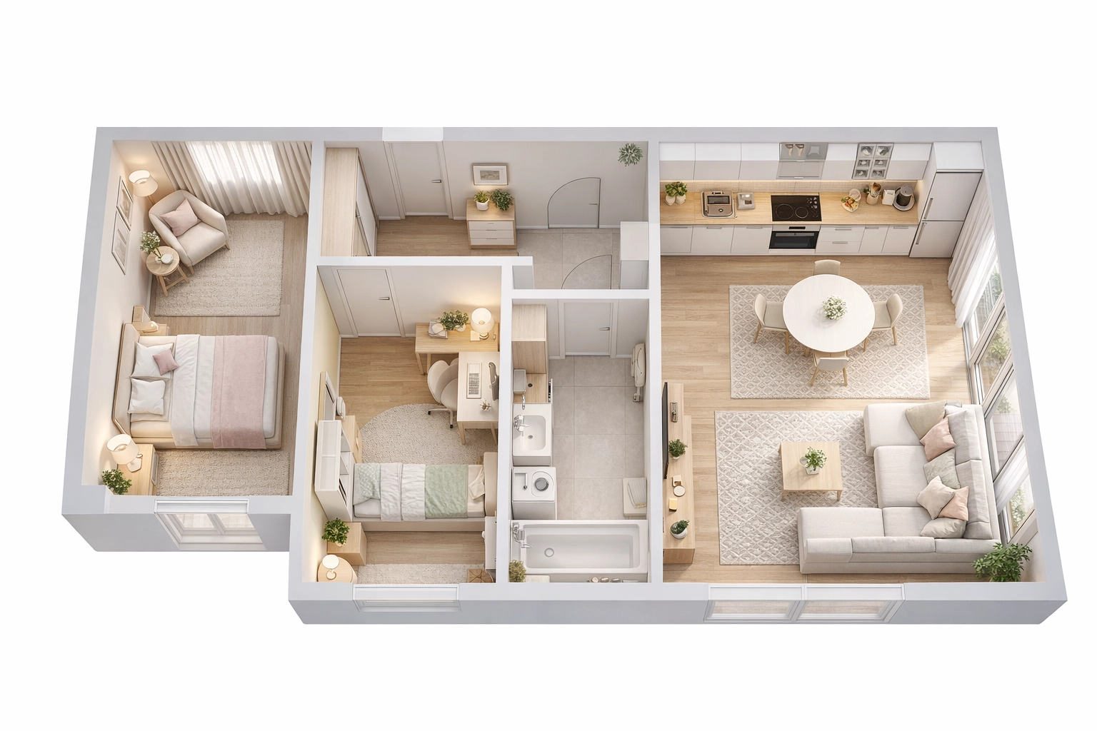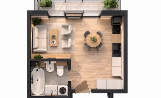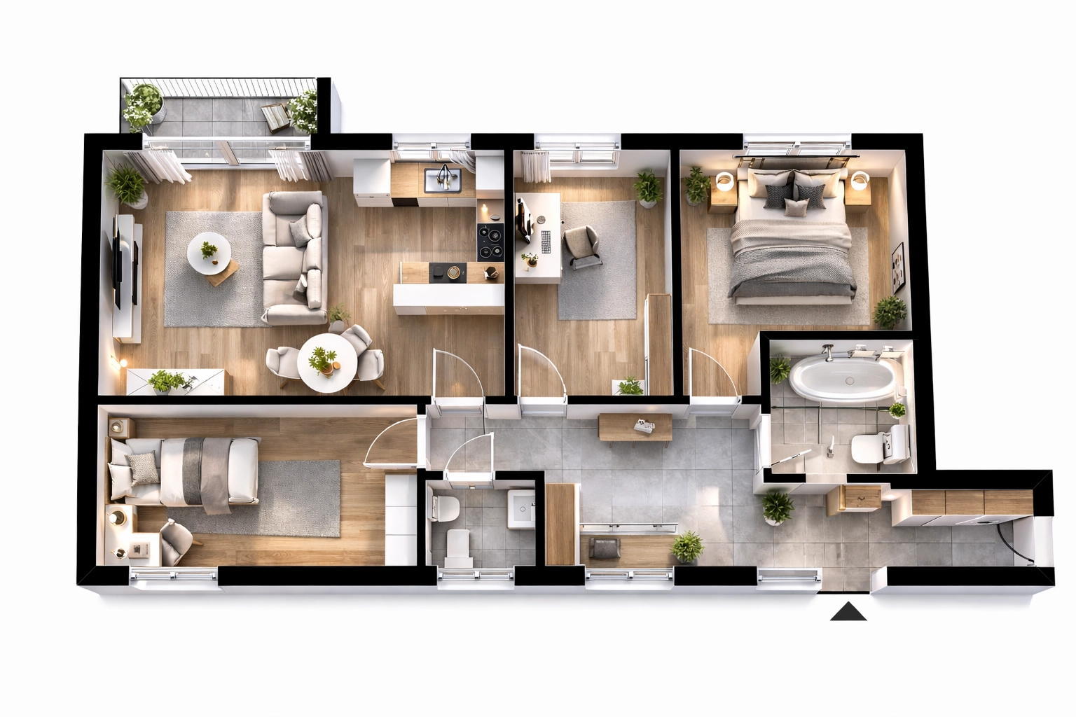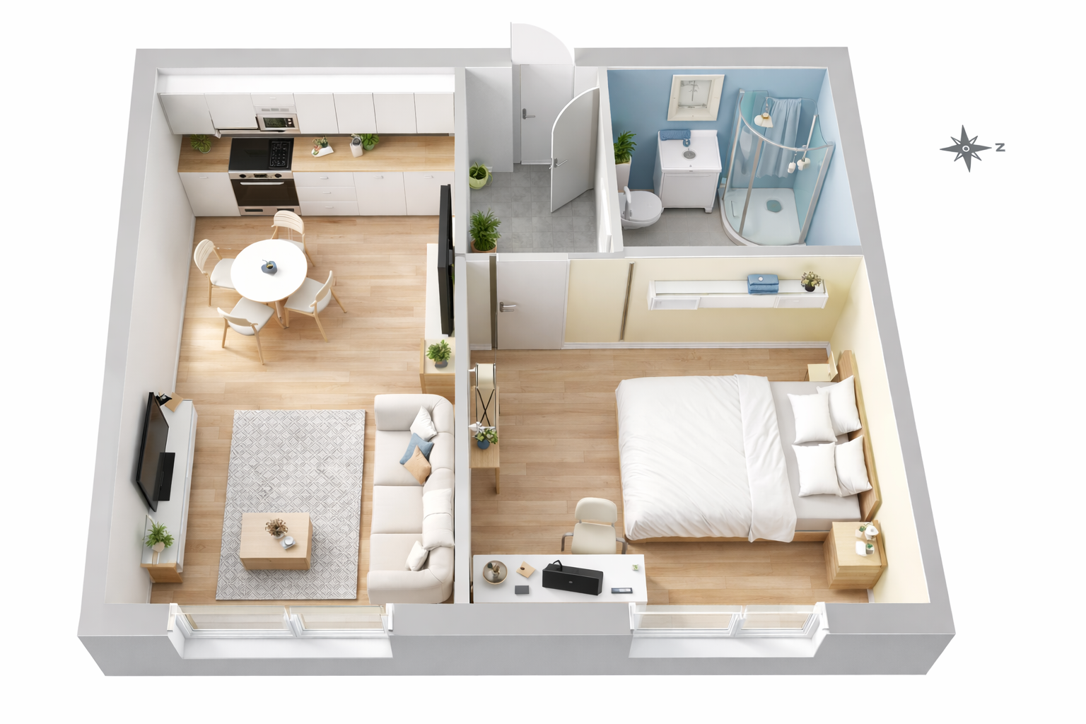 Inwestycja wyróżnia się przemyślaną architekturą i funkcjonalnymi układami mieszkań – od kompaktowych kawalerek, przez lokale 2- i 3-pokojowe, po przestronne mieszkania 4-pokojowe. Każde z nich zaprojektowano z naciskiem na ergonomię, dostęp do światła i komfort użytkowania.