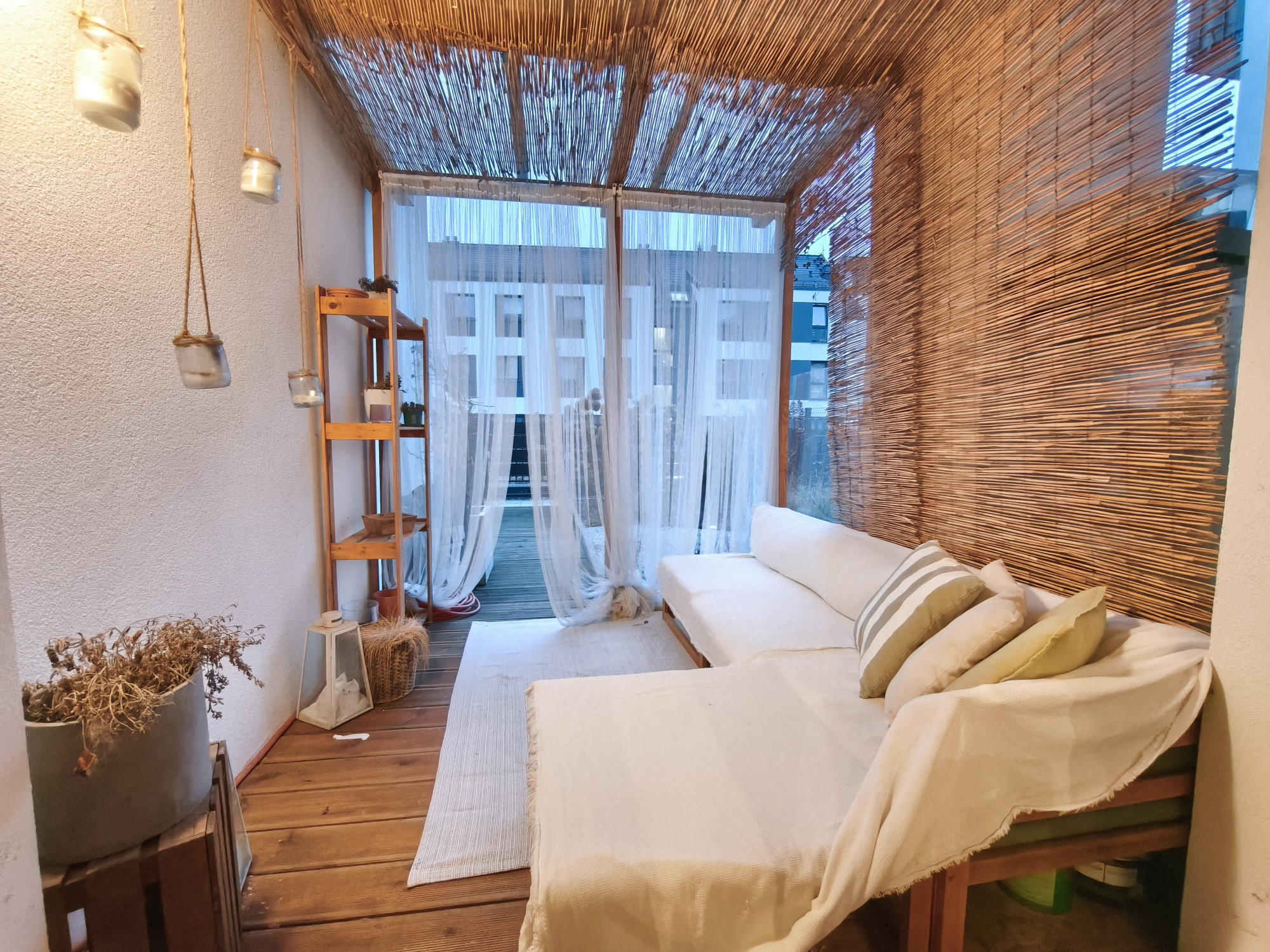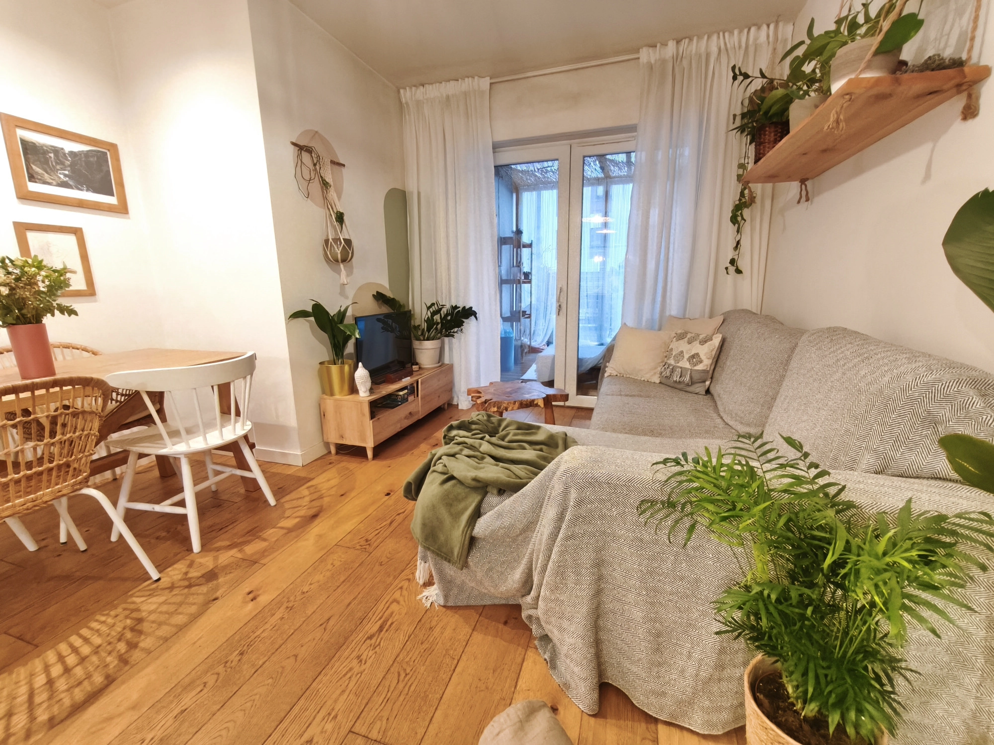 Z salonu wyjście na zadaszony i zagospodarowany taras oraz ogródek o łącznej powierzchni blisko 30 m² – idealna przestrzeń na poranną kawę, relaks lub spotkania z bliskimi.