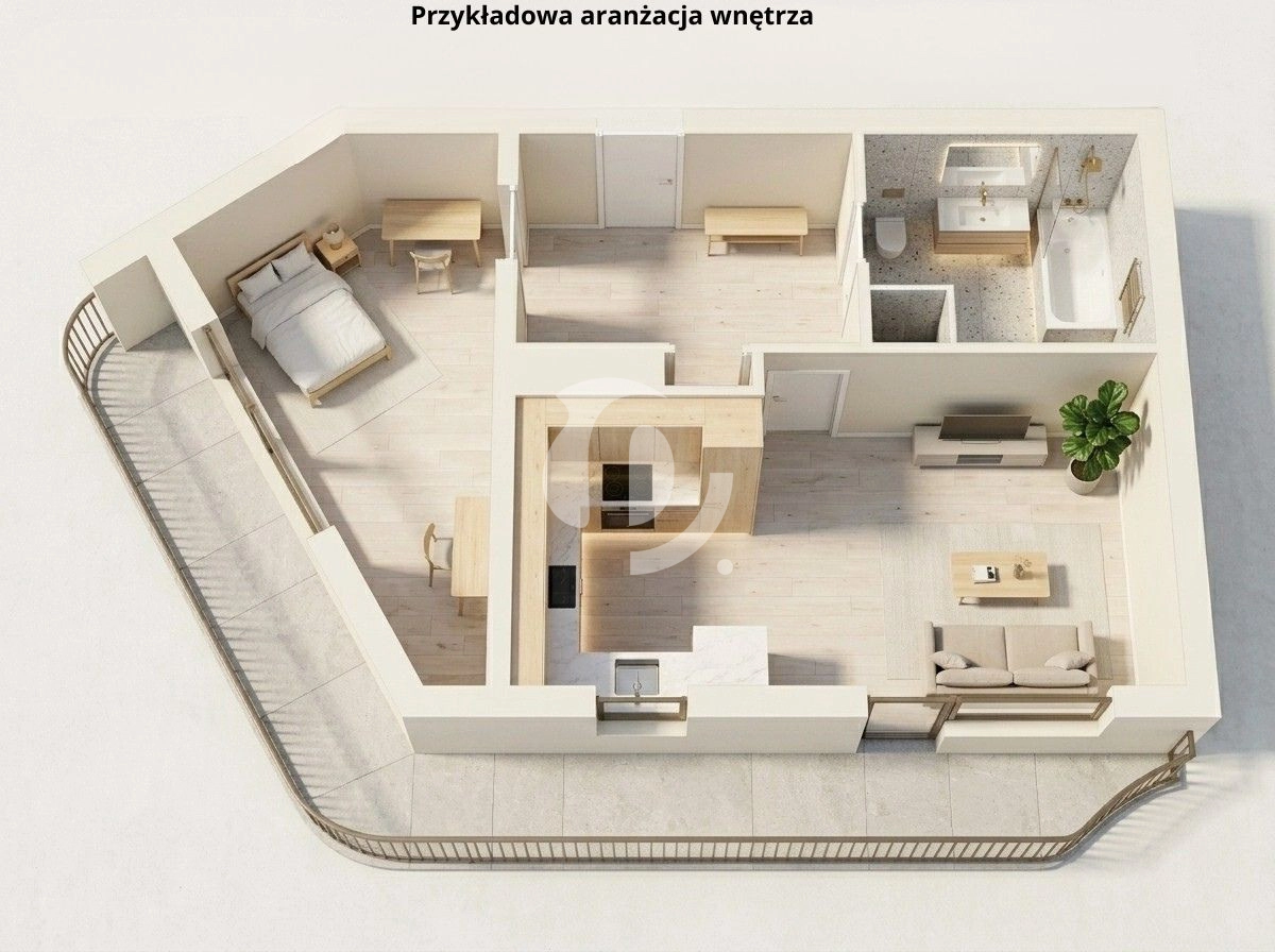 2 pokoje – salon z aneksem kuchennym (oddzielony ruchomą ścianką) + sypialnia