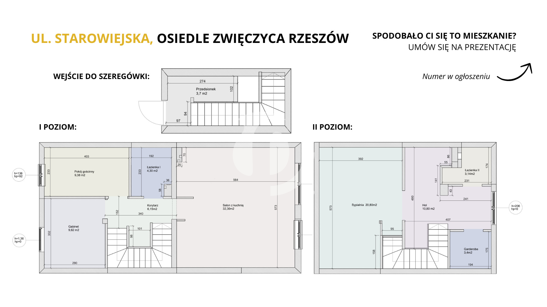 Rzeszów, ul. Starowiejska – osiedle Zwięczyca – dwupoziomowe mieszkanie w zabudowie szeregowej, powierzchnia użytkowa 109,94 m2, 4 pokoje, garderoba, 2 łazienki, hall, schody oraz klatka schodowa, ok. 25 metrowy taras z widokiem na otwartą przestrzeń, przestrzenny balkon, 2 miejsca postojowe przy wejściu do mieszkania a całość mieszkania do wprowadzenia. Mieszkanie wykończone z wysokiej klasy materiałów, dobranych przez właścicieli i projektantkę wnętrz.