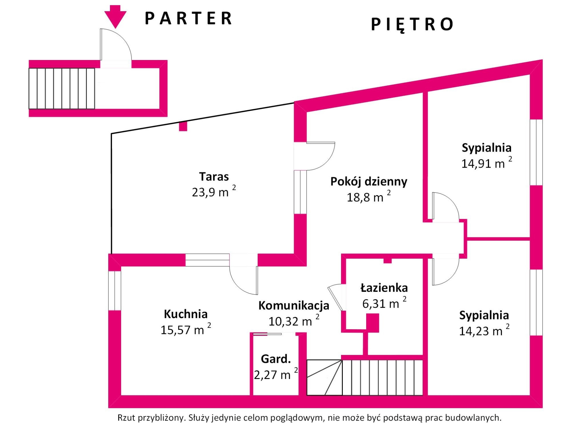 Przestronny taras: 24 m² – idealny do relaksu, spotkań towarzyskich czy stworzenia zielonej oazy.