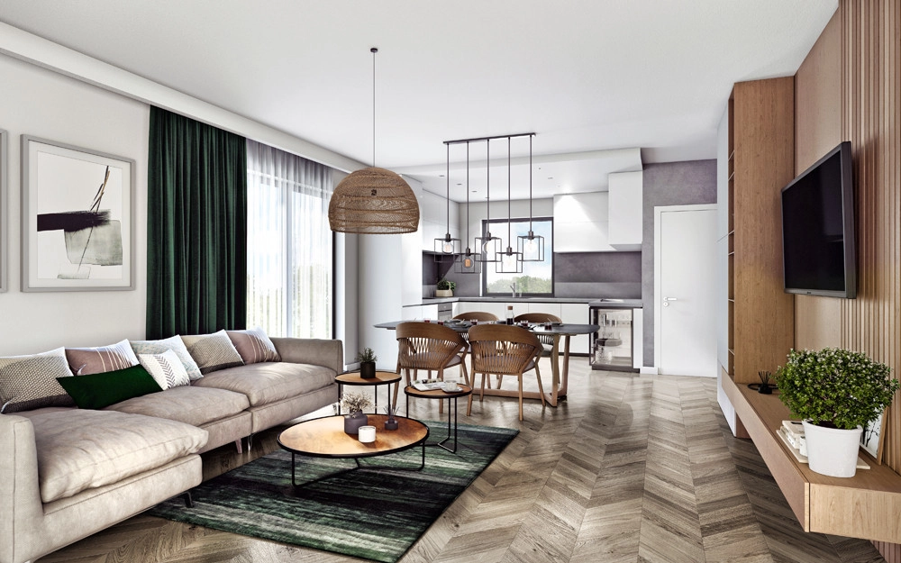 Wysoki standard wykończenia obejmujacy m.in. ogrzewanie podłogowe na całej powierzchni oraz okna 3-szybowe.