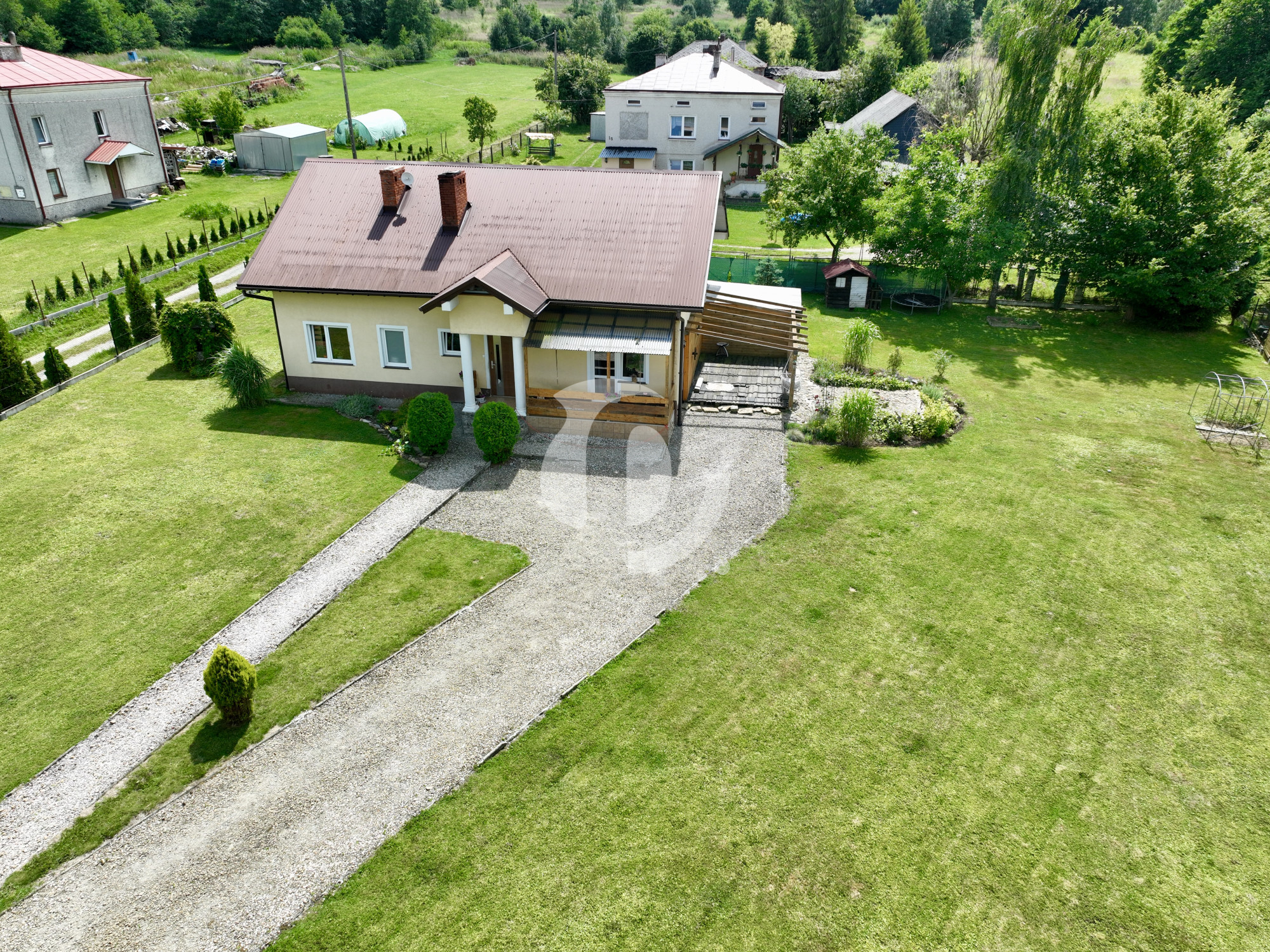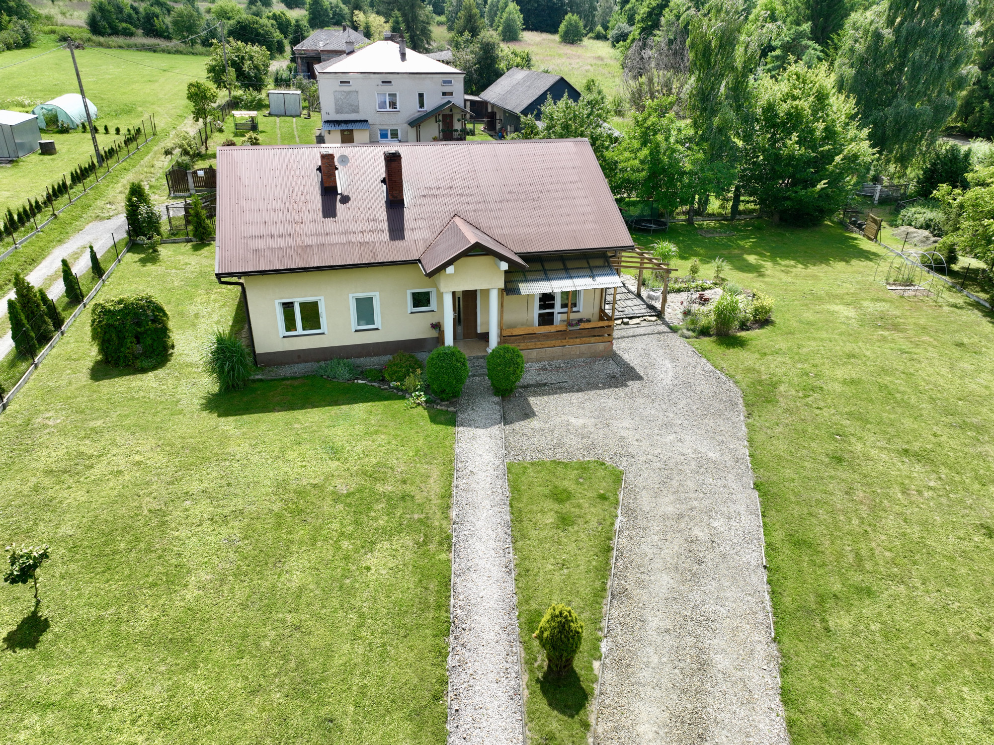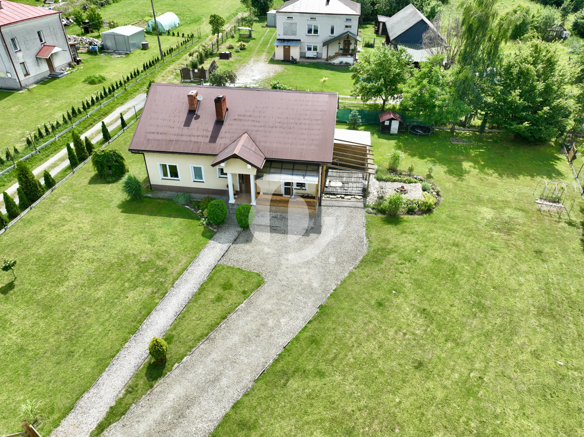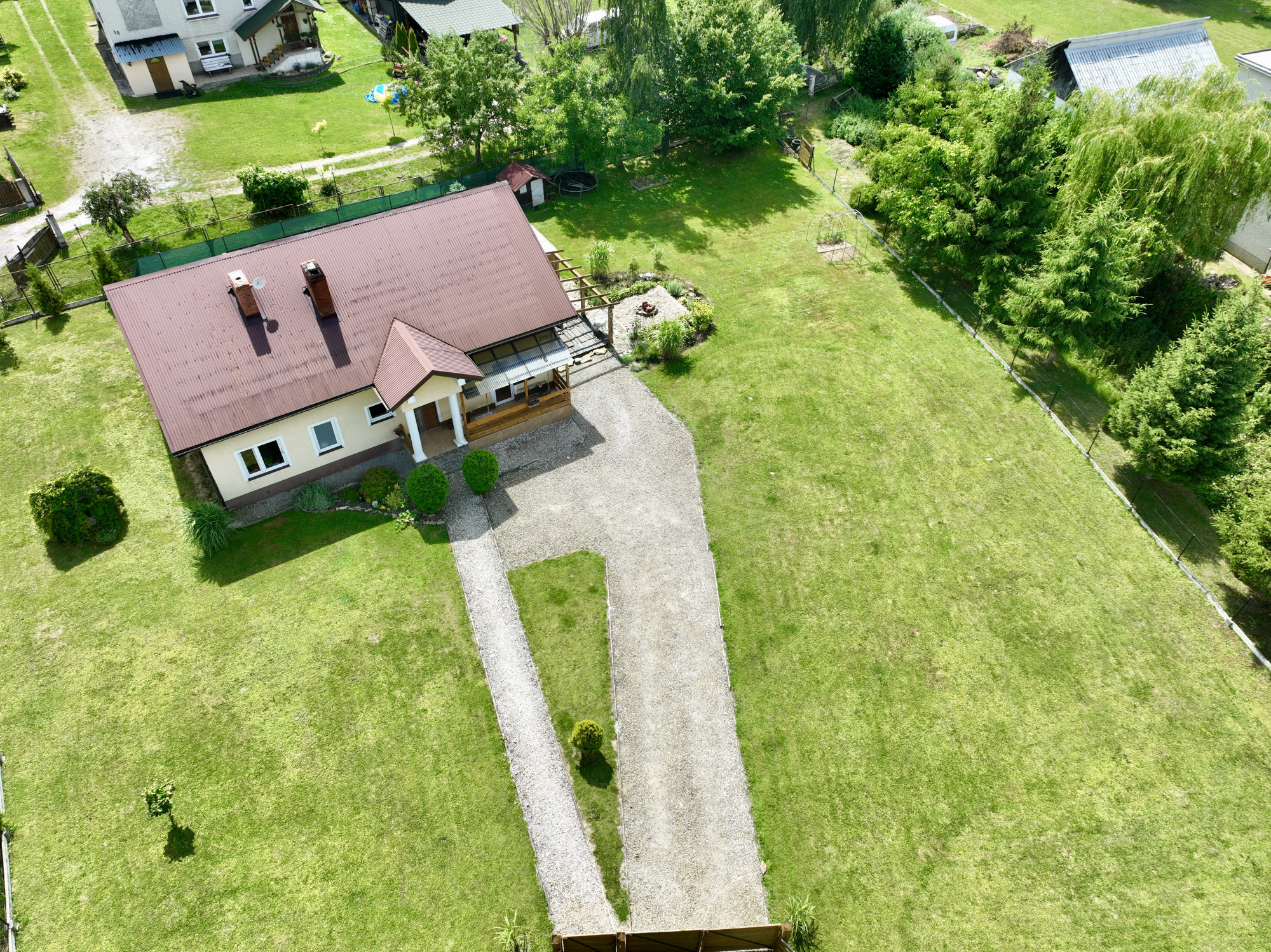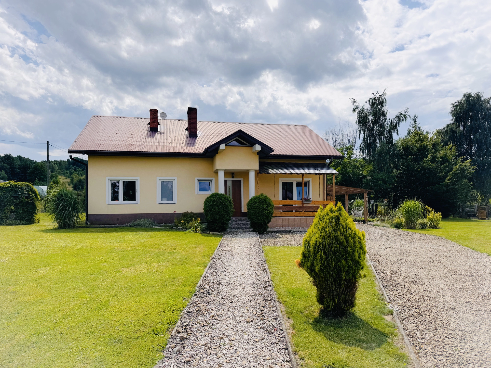 Ten wyjątkowy dom o powierzchni użytkowej 98,2 m², usytuowany na działce w kształcie trapezu, o wielkości 1800 m², wybudowany według projektu „Domino-2” (z bardzo niewielkimi adaptacjami), z pustaka Ytong. Więźby dachowe drewniane (sosnowe/świerkowe) klasy C-30. Każdy element, został starannie wybrany, aby zapewnić maksymalny komfort i estetykę