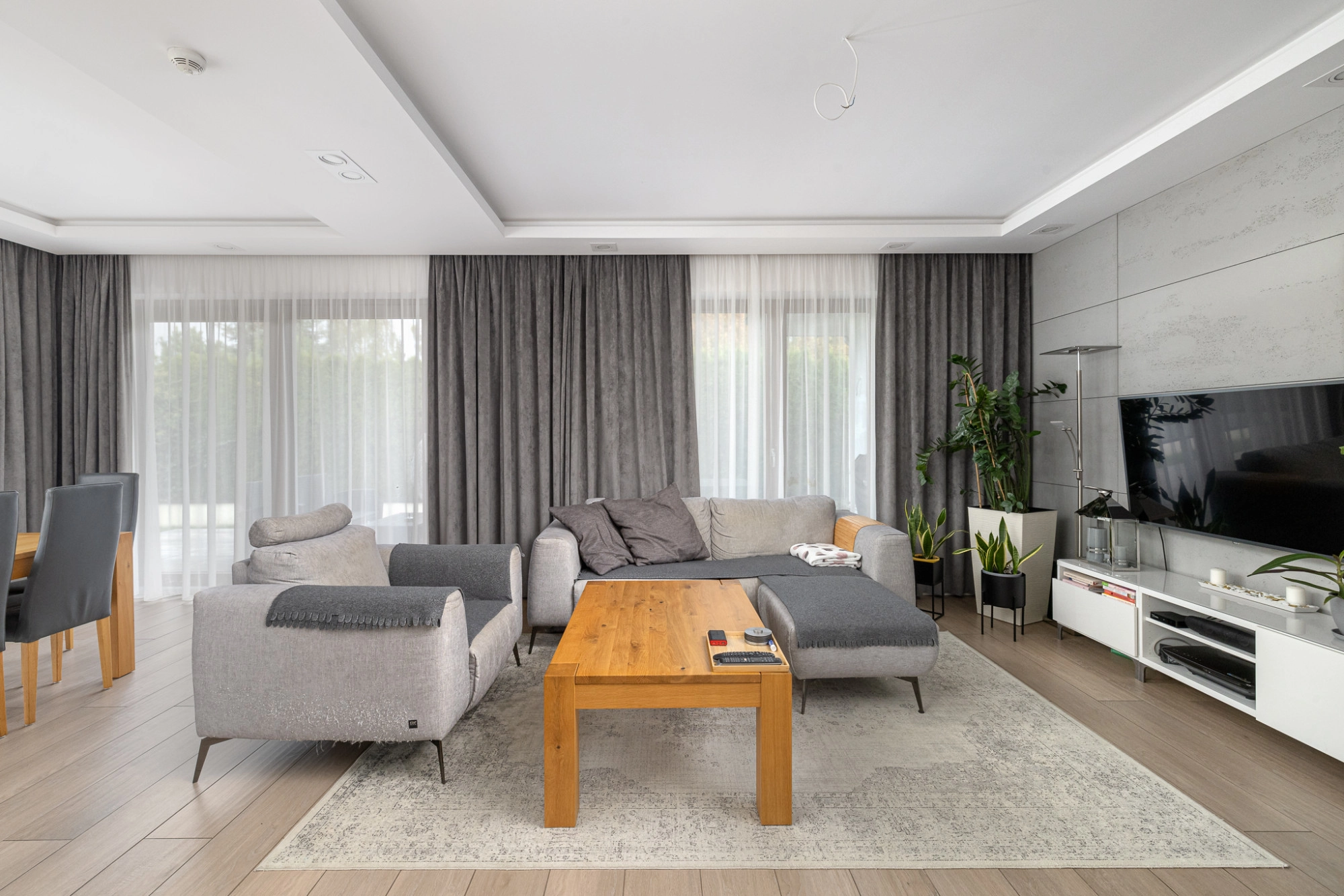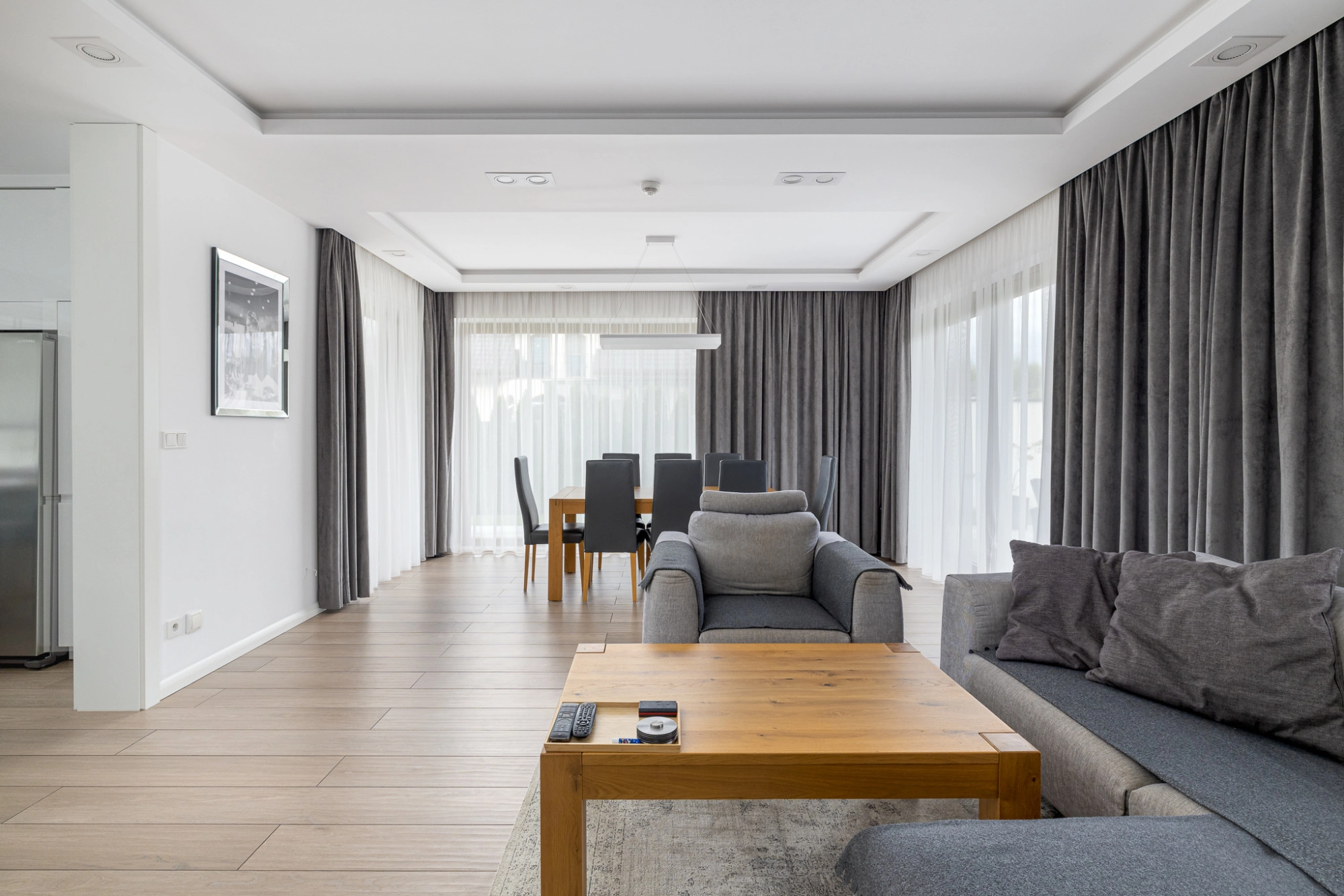 – salon z jadalnią(36m2) i z wyjściem na dwa tarasy o powierzchni 8 i 27m2