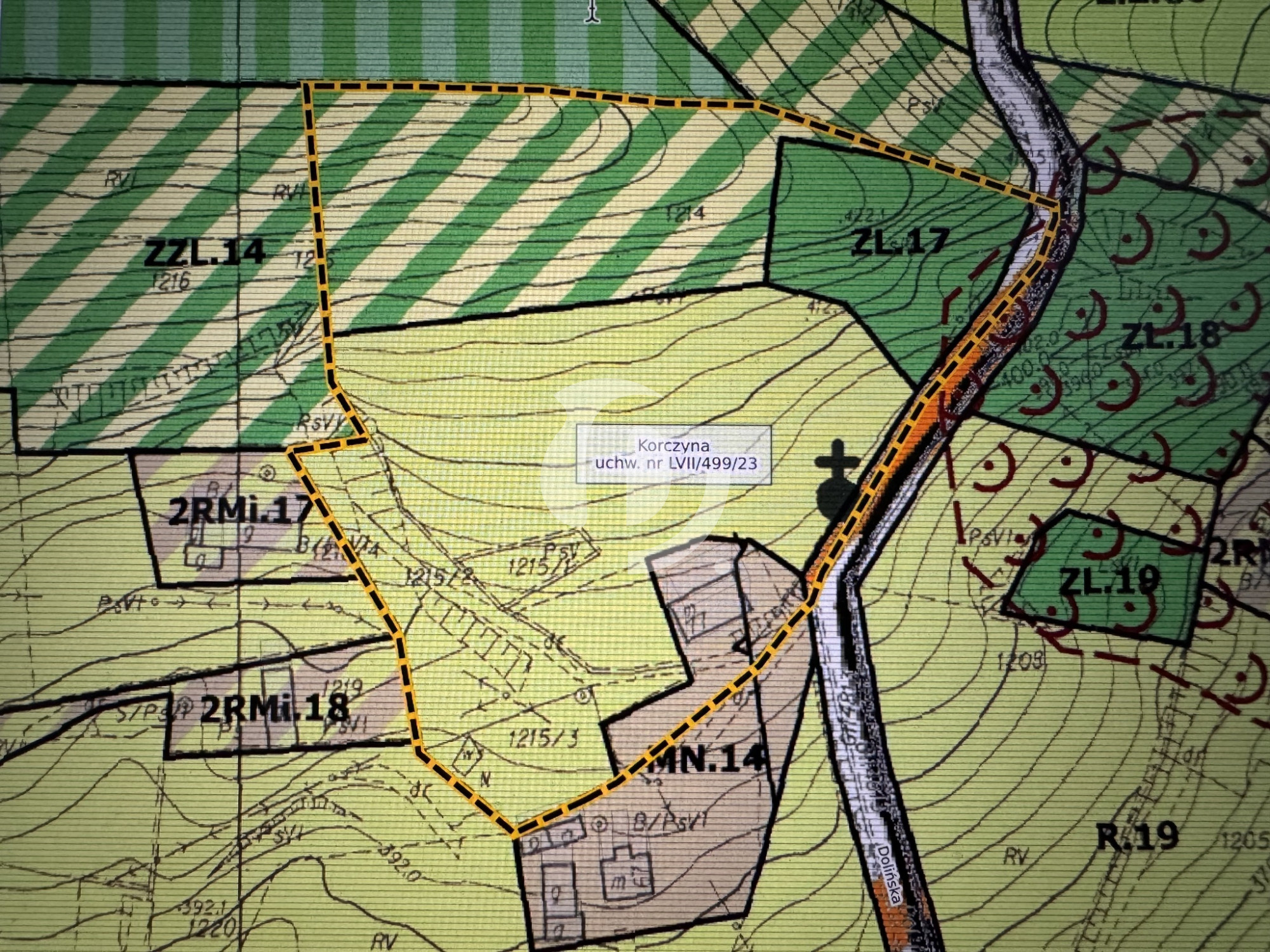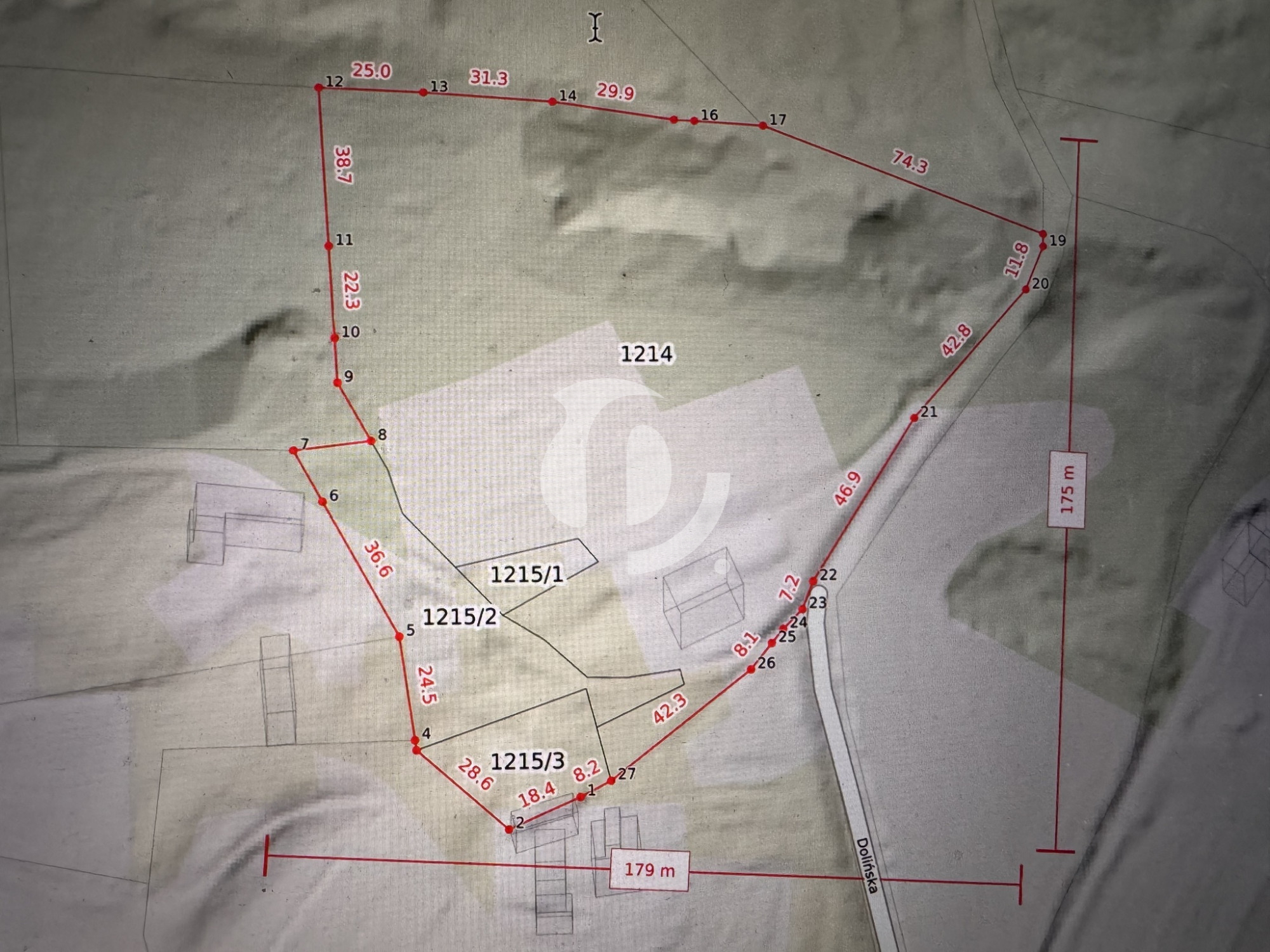 Nieruchomość znajduje się na działkach o łącznej powierzchni 2,02 ha (nr ew. 1214, 1215/1, 1215/2, 1215/3). Działka o dużym nachyleniu, co czyni ją wyjątkowo atrakcyjną pod winnicę, domki letniskowe lub inną inwestycję turystyczno-rekreacyjną. Teren objęty jest miejscowym planem zagospodarowania przestrzennego, z oznaczeniami ZL (lasy), R (grunty rolne) oraz MN (zabudowa mieszkaniowa).