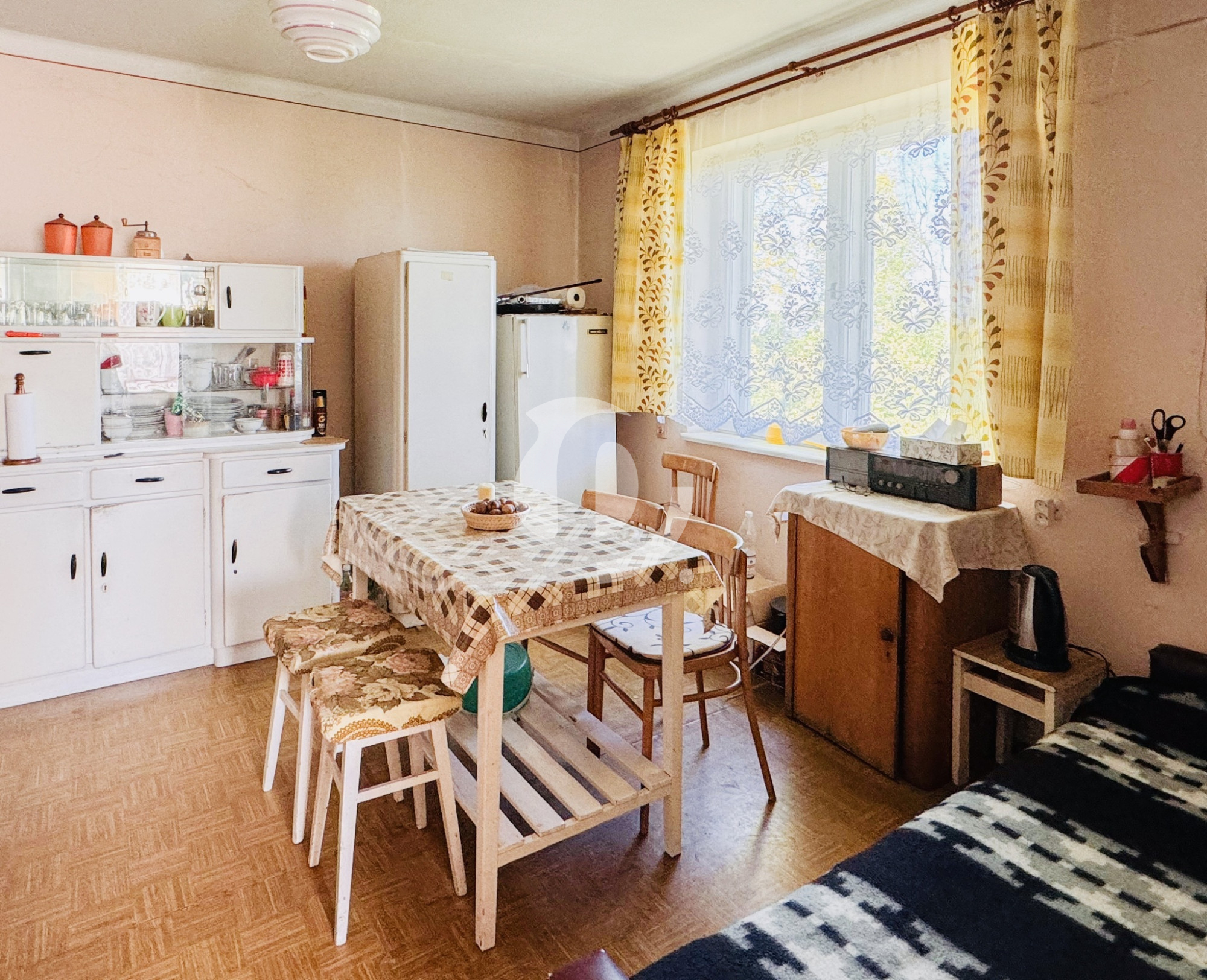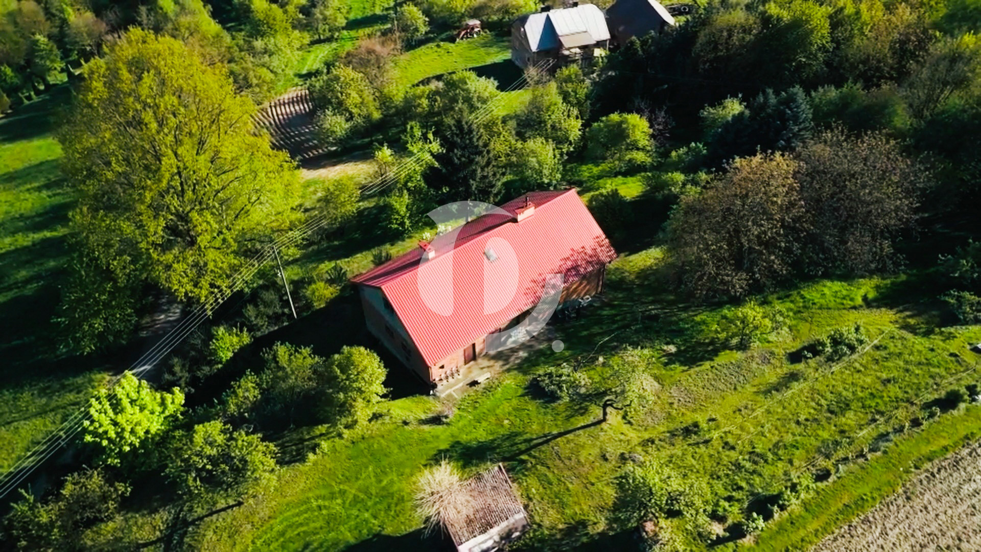 Budynek, wybudowany w 1978 roku z cegły i pokryty blachodachówką, składa się z części mieszkalnej oraz gospodarczej. Część mieszkalna obejmuje korytarz, kuchnię z tradycyjnym kaflowym piecem, łazienkę oraz dwa pokoje. Część gospodarcza to trzy oddzielne pomieszczenia, które z powodzeniem mogą zostać zaadaptowane na cele użytkowe lub rekreacyjne. Dodatkową przestrzeń stanowi wysoki, nieużytkowany strych, idealny do aranżacji na poddasze mieszkalne, a także pełnowymiarowa piwnica. Część okien została wymieniona na PCV.
