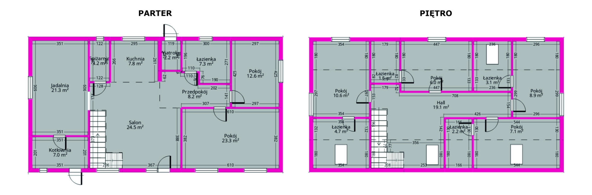 * 4 pokoje, każdy z osobną łazienką (możliwość przystosowania pod garderoby)