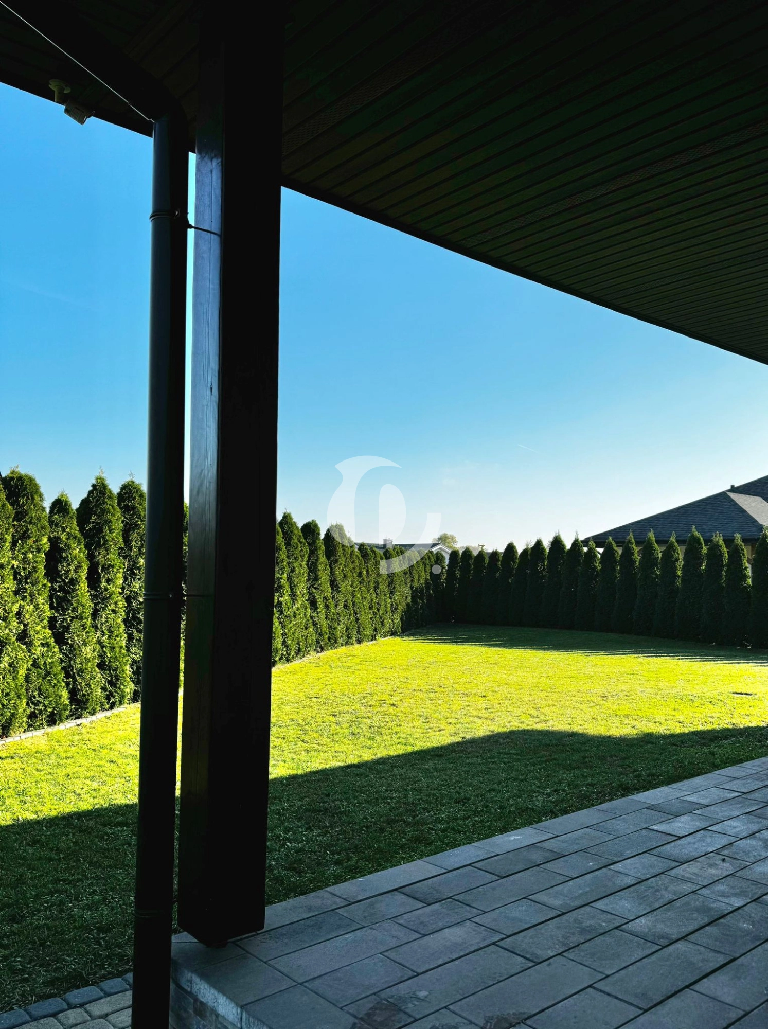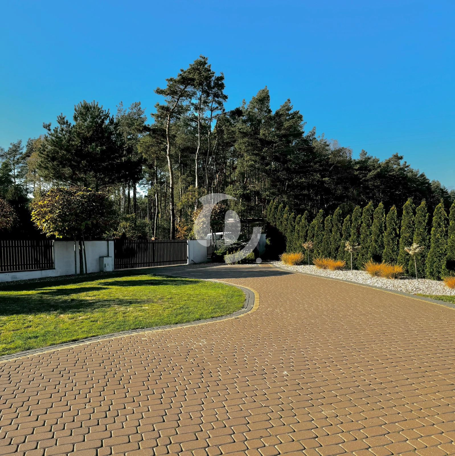 Ogród  o powierzchni 10a, pokryty trawnikiem, obsadzony drzewami z gatunku „Tuja”. Podjazd od frontowej strony domu utwardzony kostką, ogrodzenie murowane.