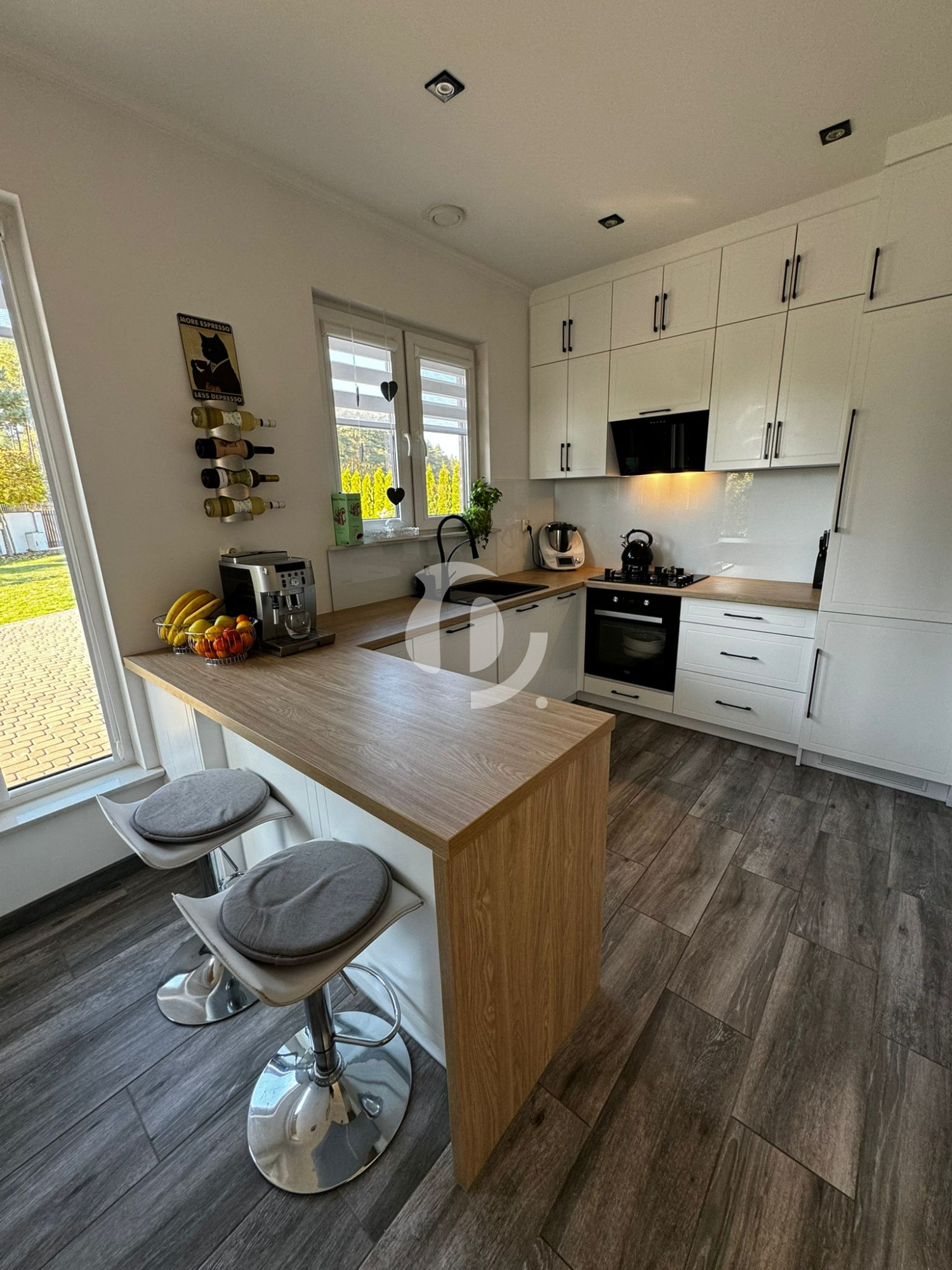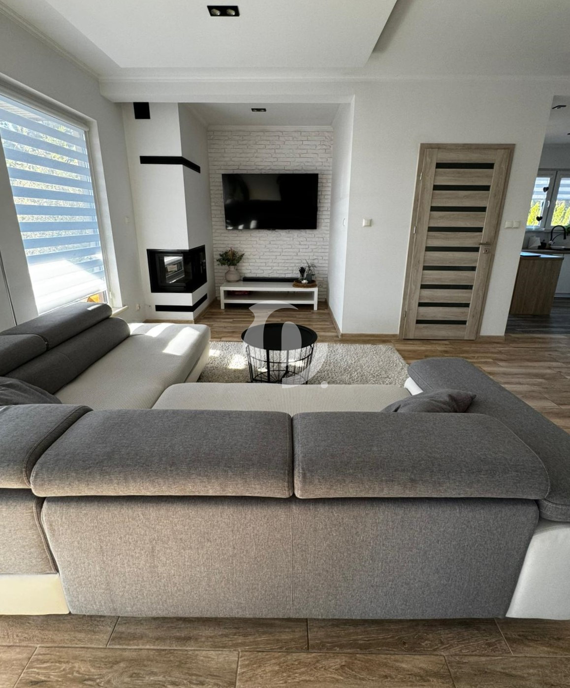 – liczba pomieszczeń: 3 sypialnie, oddzielna garderoba, łazienka, wiatrołap oraz przestronny, jasny salon z kominkiem i wyjściem na taras oraz kuchnią otwartą na salon,