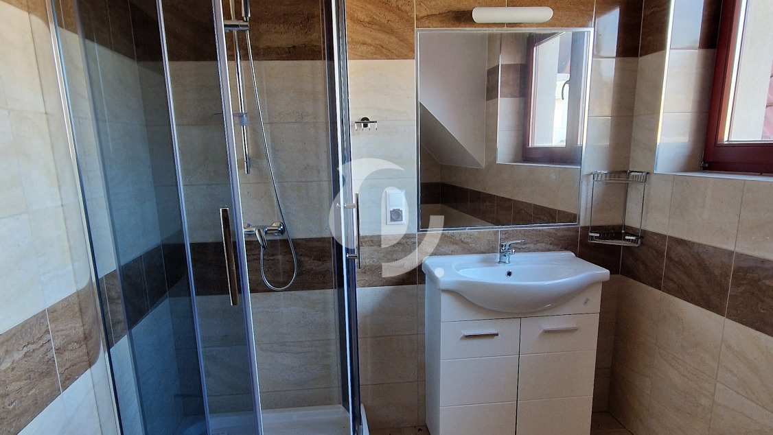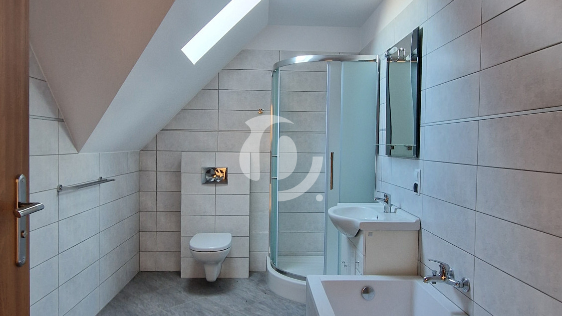– W pełni wyposażone łazienki: W domu znajduje się kilka łazienek, wykończonych w różnych stylach – od nowoczesnej szarości z wanną i kabiną prysznicową, po klasyczne beże z narożnymi natryskami.