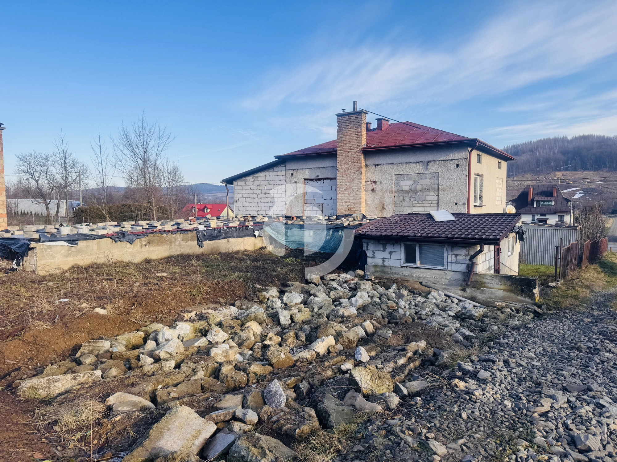 Budynek o powierzchni użytkowej ok. 115 m², wybudowany w latach 70. z pustaka, częściowo ocieplony i z rozpoczętym remontem. Dach pokryty blachą, okna PCV, częściowo ocieplony.
