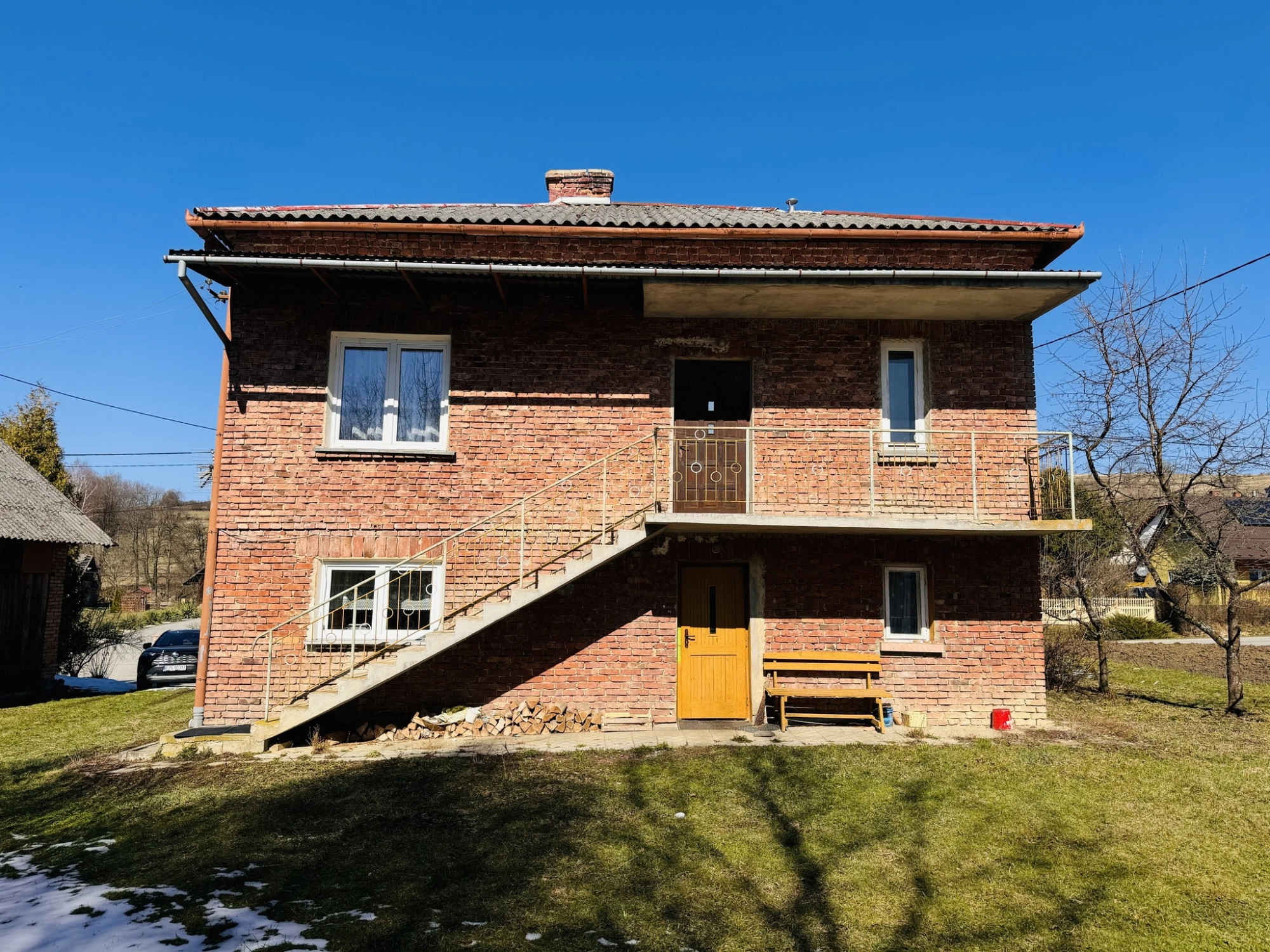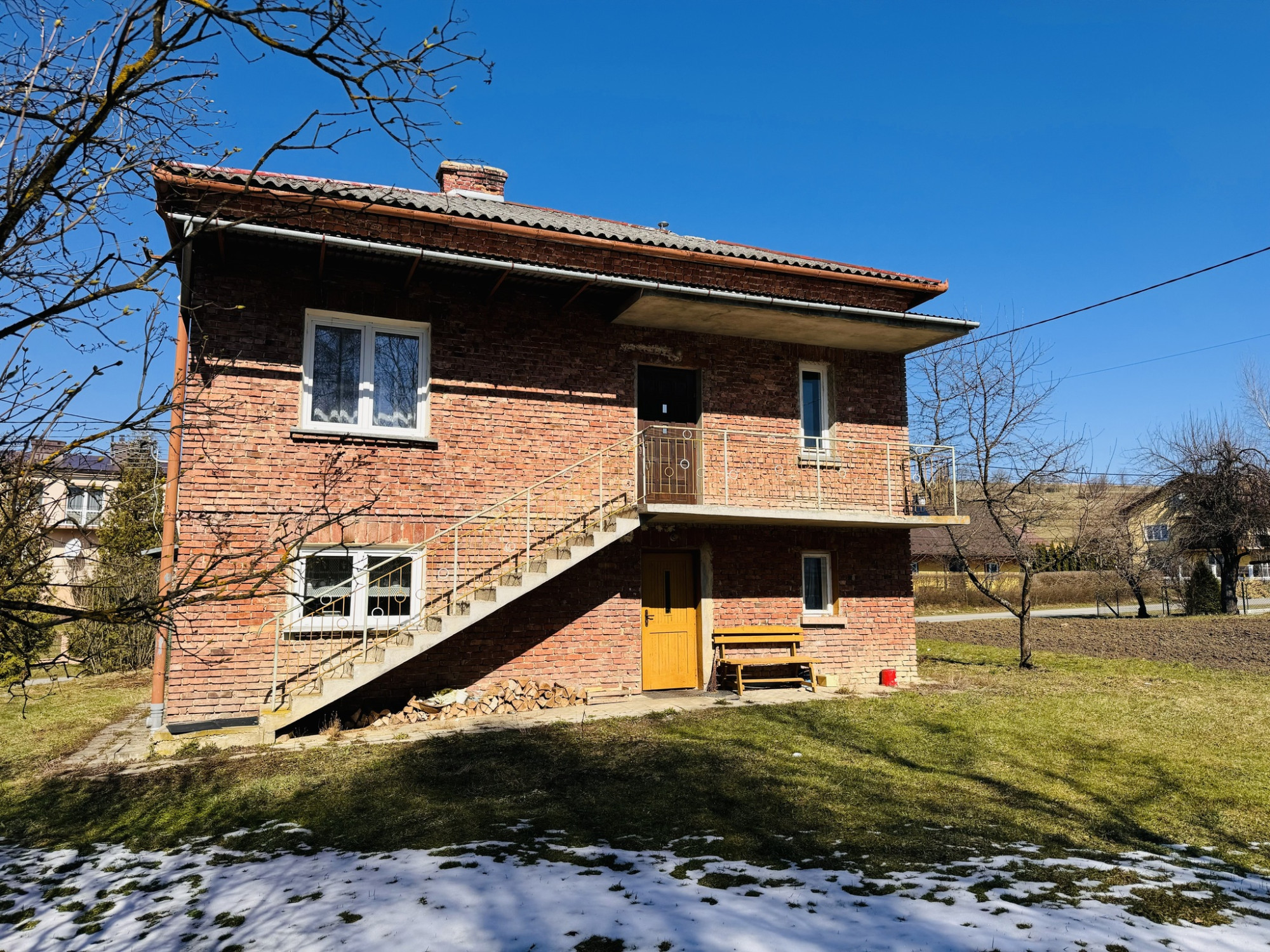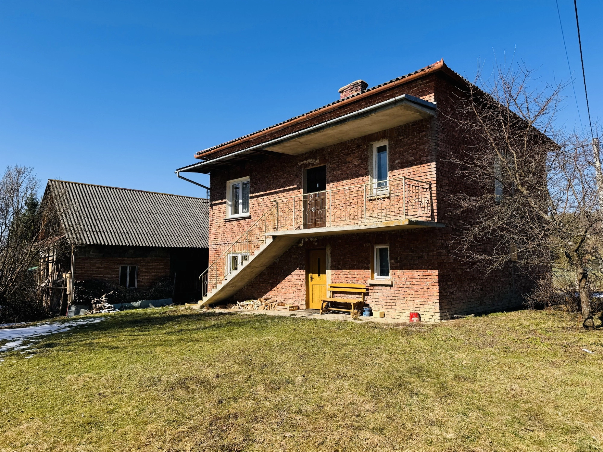 Dom został wybudowany w latach 70. z cegły, dach pokryty eternitem, okna wymienione na PCV. Budynek wymaga odświeżenia lub modernizacji, ale ma solidne podstawy i duży potencjał rozwojowy. Dodatkowym atutem jest duży, drewniano-murowany budynek gospodarczy o powierzchni ok. 98 m², który świetnie sprawdzi się jako warsztat, przestrzeń magazynowa, a może nawet… własne studio lub mały pensjonat?