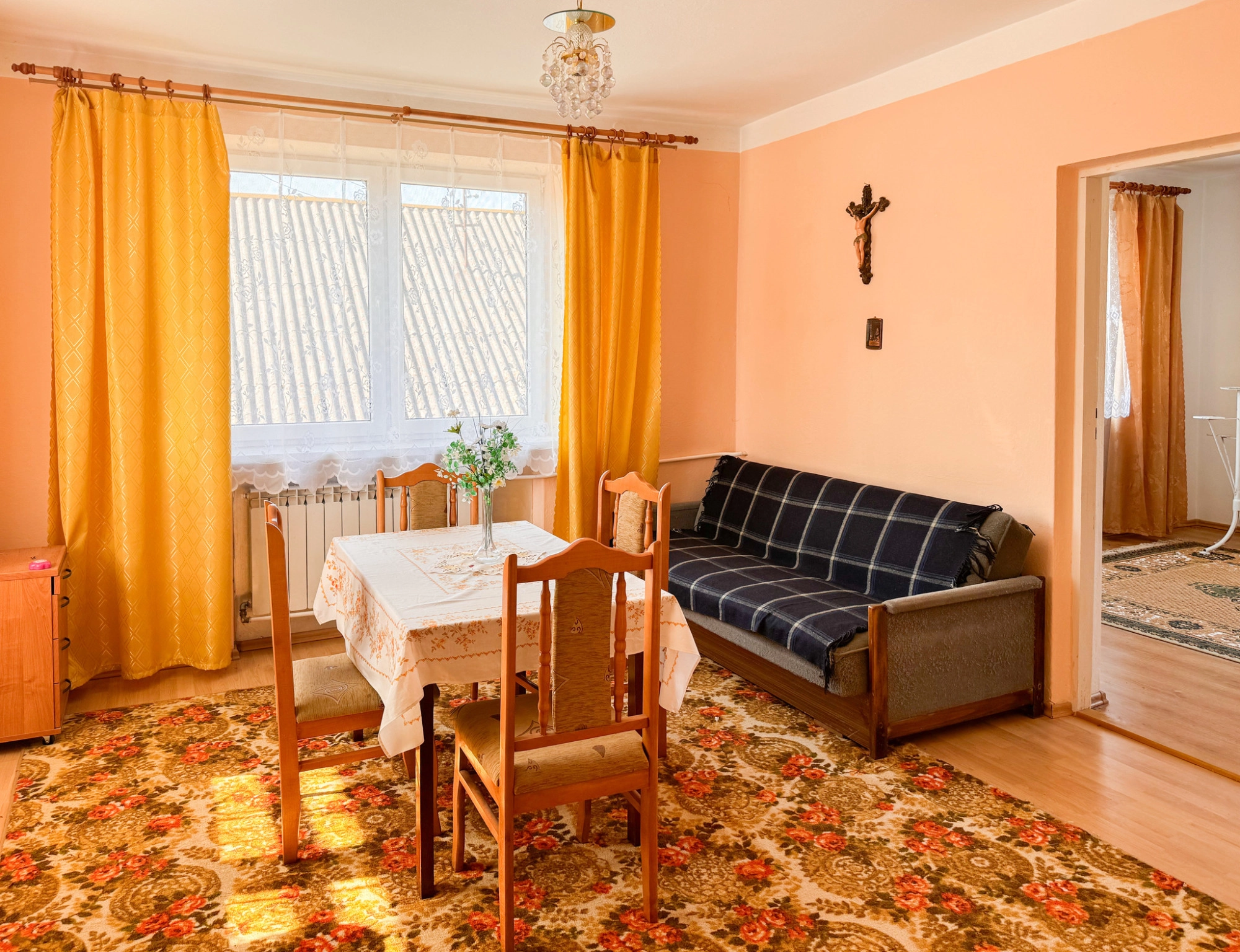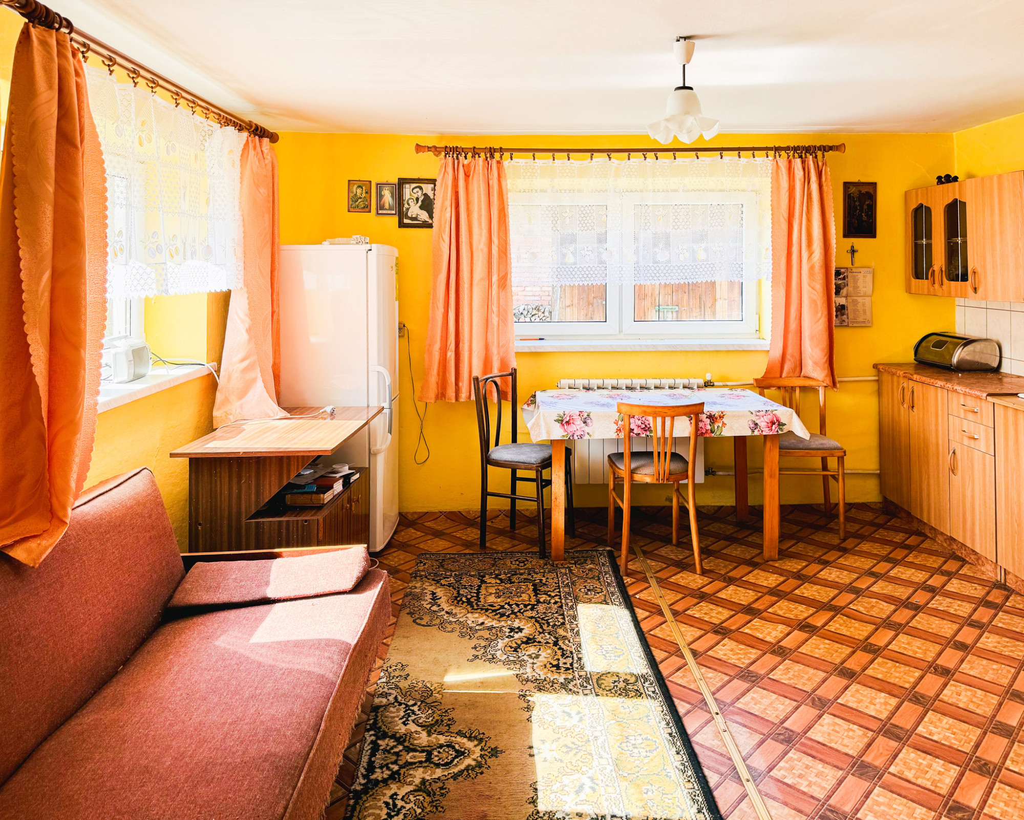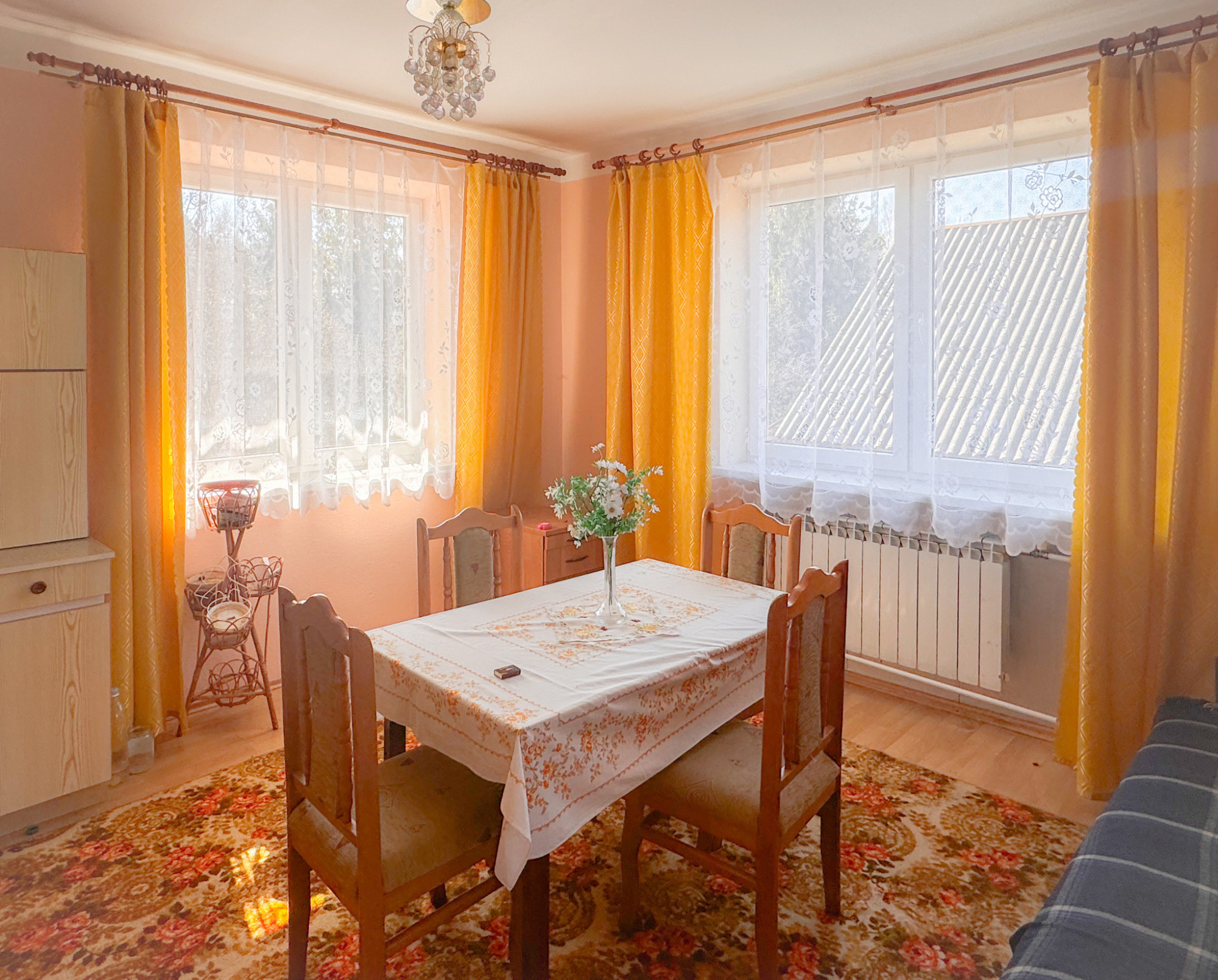Dom został wybudowany w latach 70. z cegły, dach pokryty eternitem, okna wymienione na PCV. Budynek wymaga odświeżenia lub modernizacji, ale ma solidne podstawy i duży potencjał rozwojowy. Dodatkowym atutem jest duży, drewniano-murowany budynek gospodarczy o powierzchni ok. 98 m², który świetnie sprawdzi się jako warsztat, przestrzeń magazynowa, a może nawet… własne studio lub mały pensjonat?