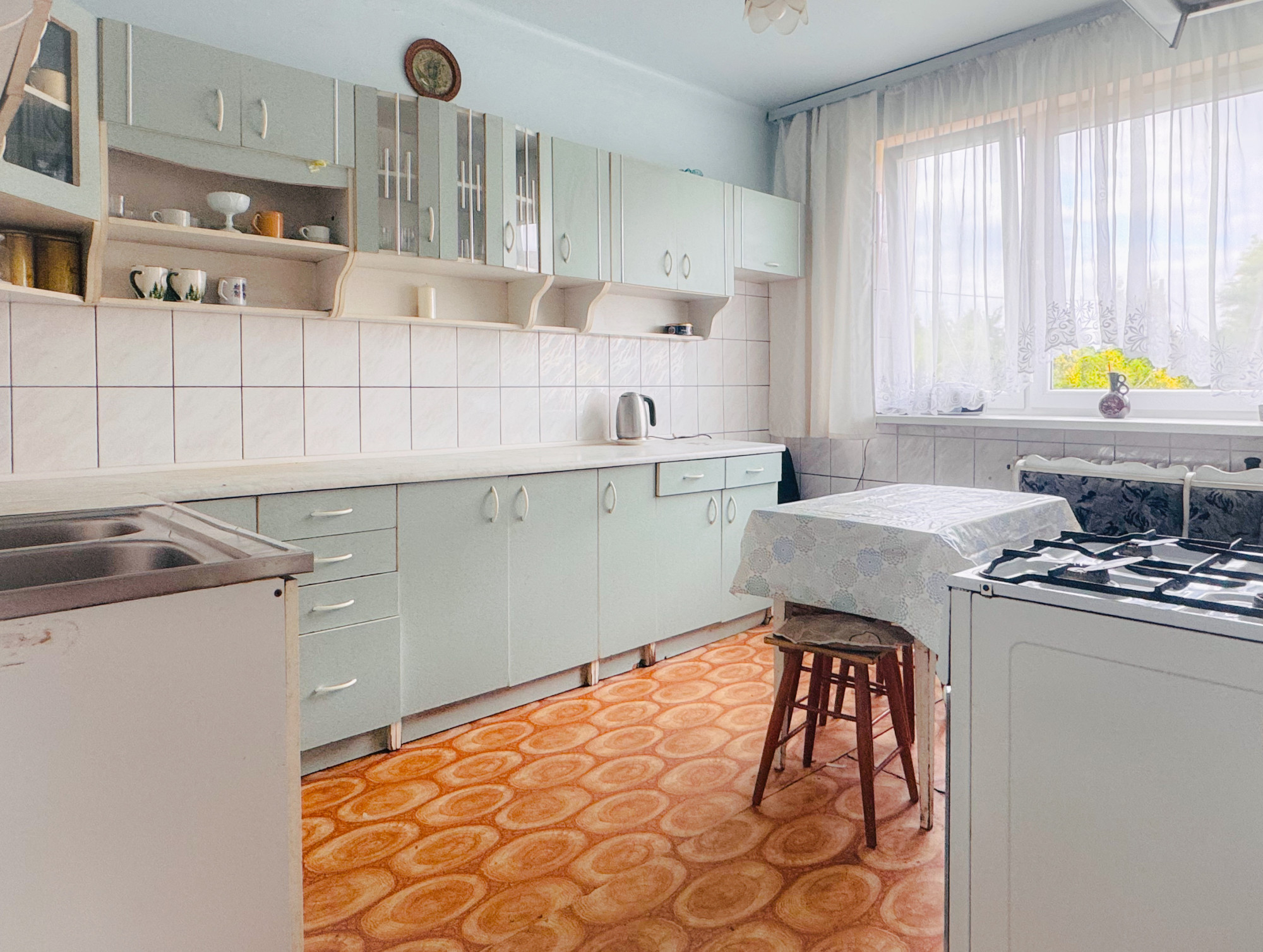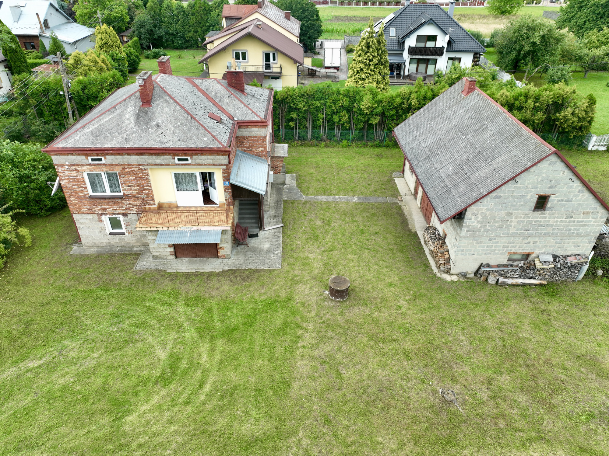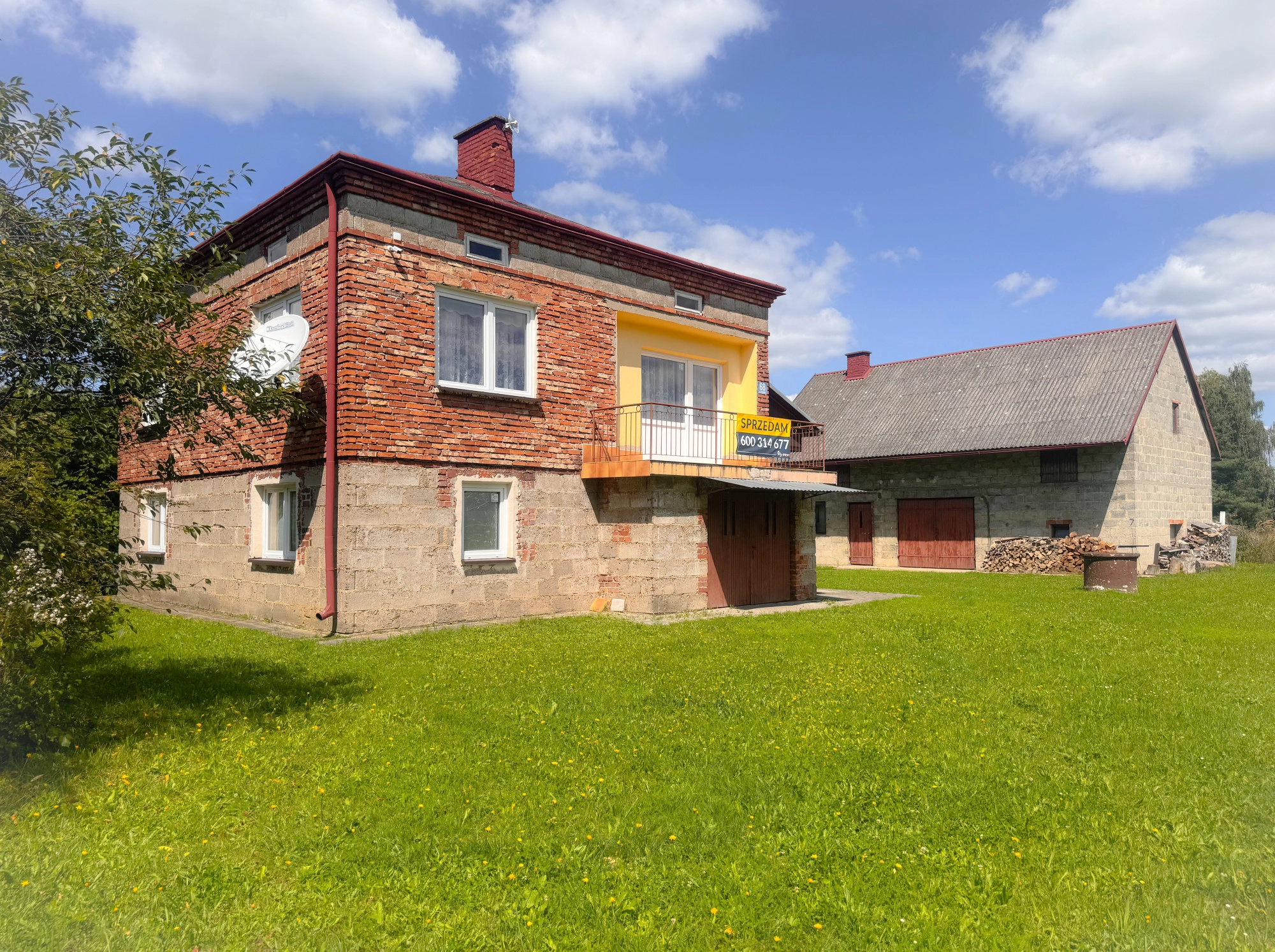 Dom o powierzchni ok. 140 m² został wybudowany w latach 70. z cegły i pustaka. Nieruchomość posiada wygodny asfaltowy dojazd, a otoczenie stanowi luźna zabudowa jednorodzinna, gwarantująca prywatność i spokój.