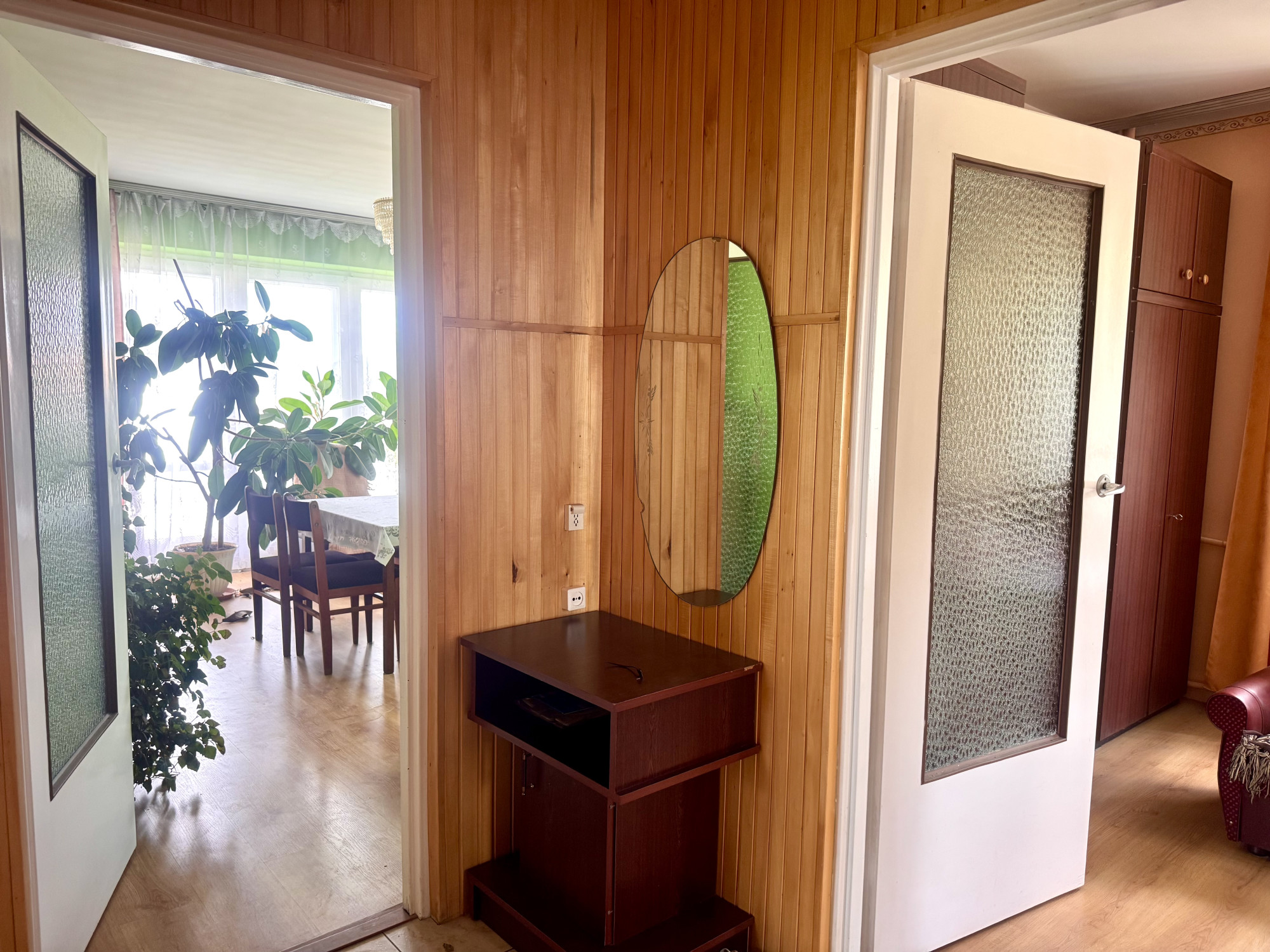 – na podłogach panele, płytki