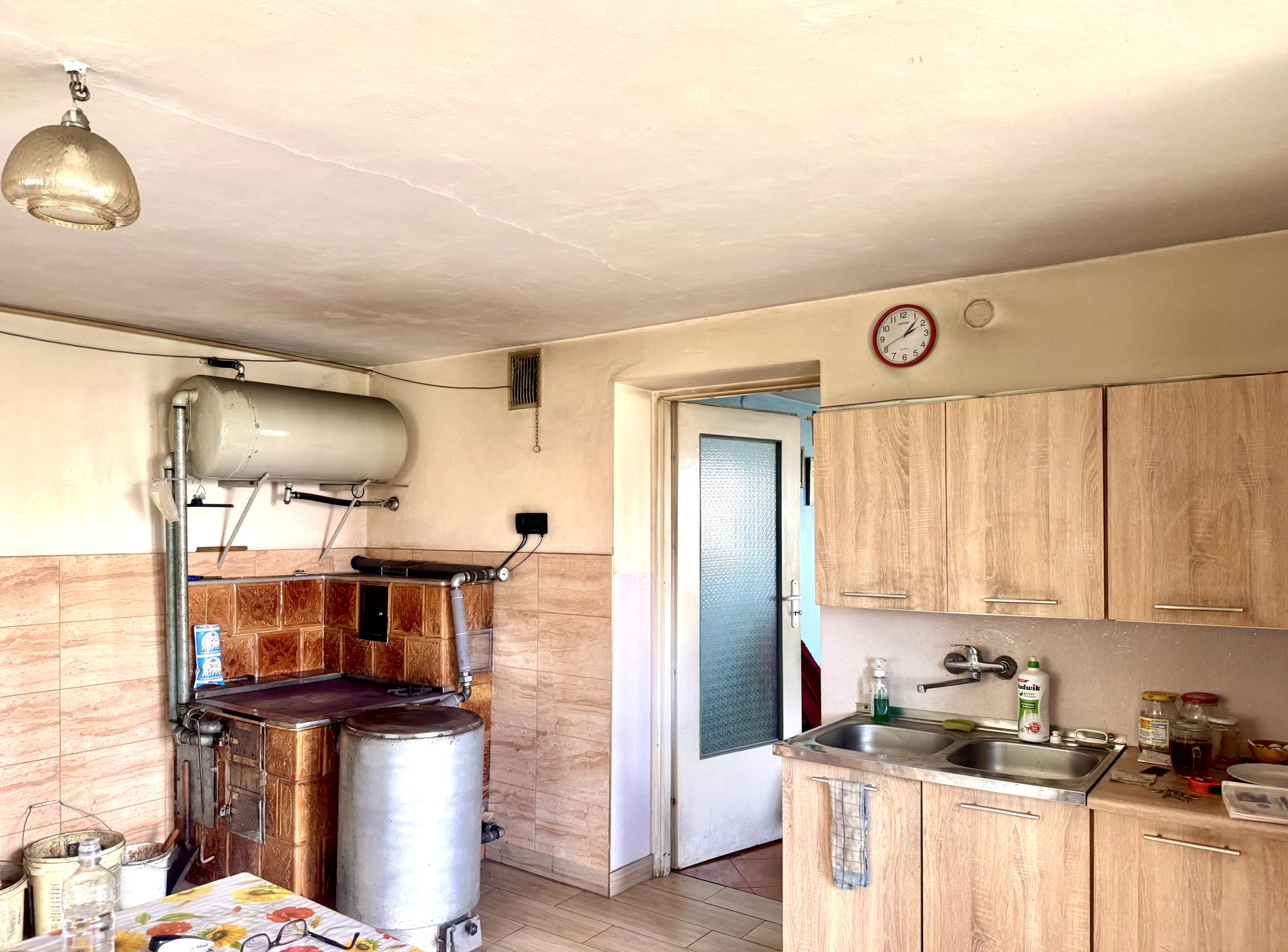 – 1 kondygnacja: kuchnia z piecem kaflowym, pokój, łazienka, kotłownia, komunikacja