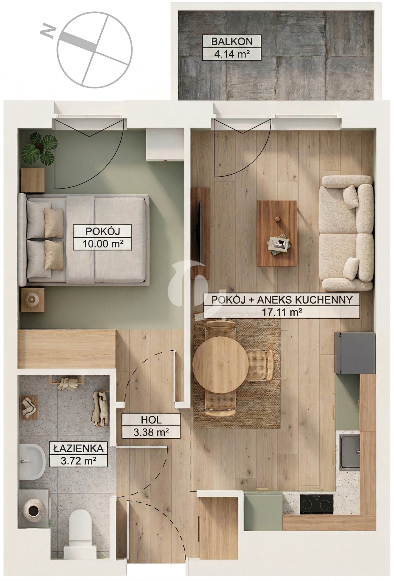 Wizualizacje mają charakter poglądowy i nie stanowią elementu oferty w rozumieniu art. 66 Kodeksu cywilnego. Mieszkanie sprzedawane jest w stanie deweloperskim.