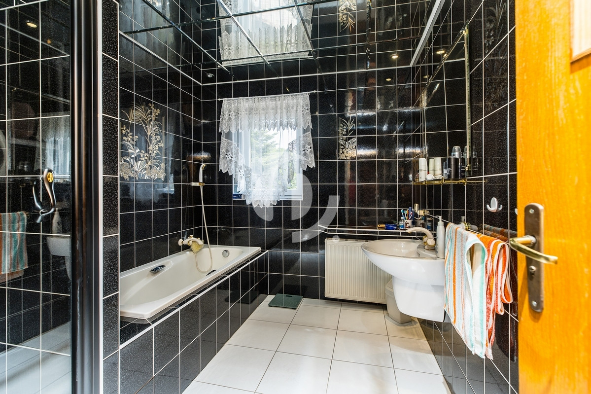 Na piętrze znajdują się 4 przestronne pokoje, w których podłogi wykończone zostały drewnianądeską. Łazienka wyposażona w wannę i prysznic. Wydzielone pomieszczenia dzienne oraz sypialniane.