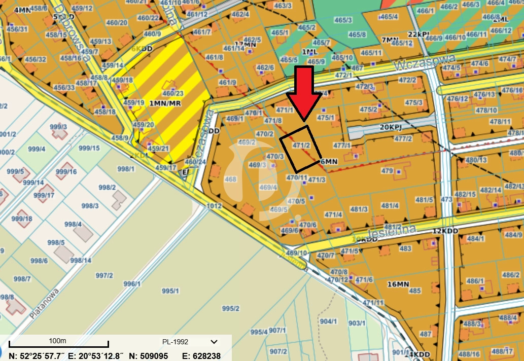 Wymiary 37x29m, MPZP – oznaczenie MN6 – zabudowa jednorodzinna wolnostojąca, dostęp do drogi, dojazd drogą gruntową.