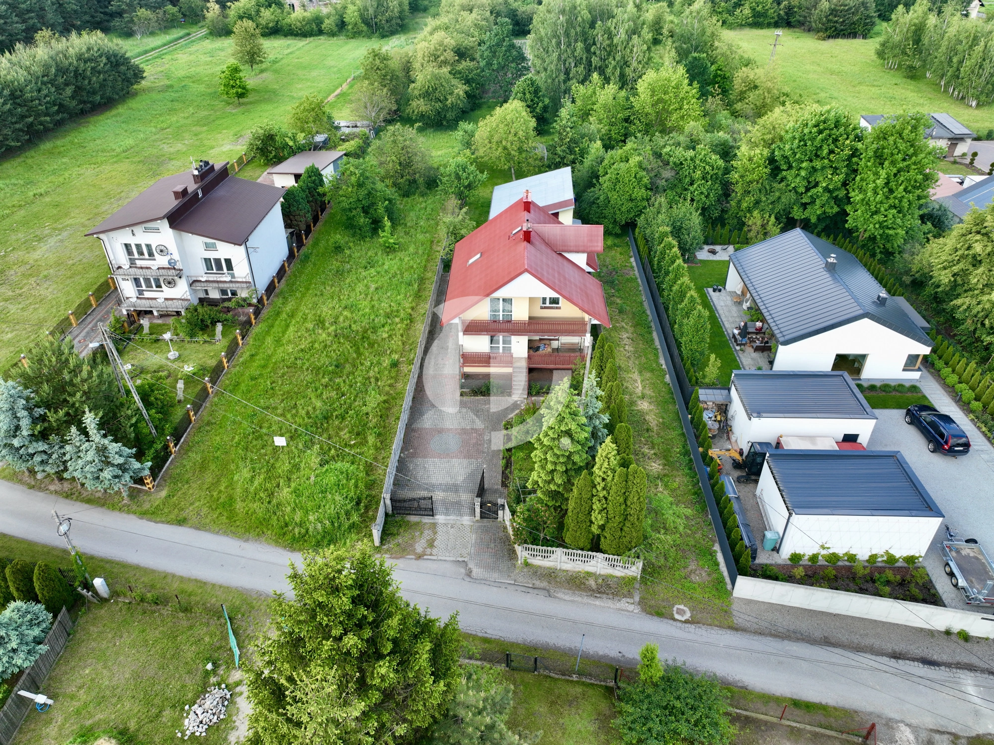 Nieruchomość znajduje się bezpośrednio przy asfaltowej drodze gminnej, w otoczeniu domów jednorodzinnych. Działka płaska w kształcie prostokąta, o wymiarach około 118 m x 14,2 m.