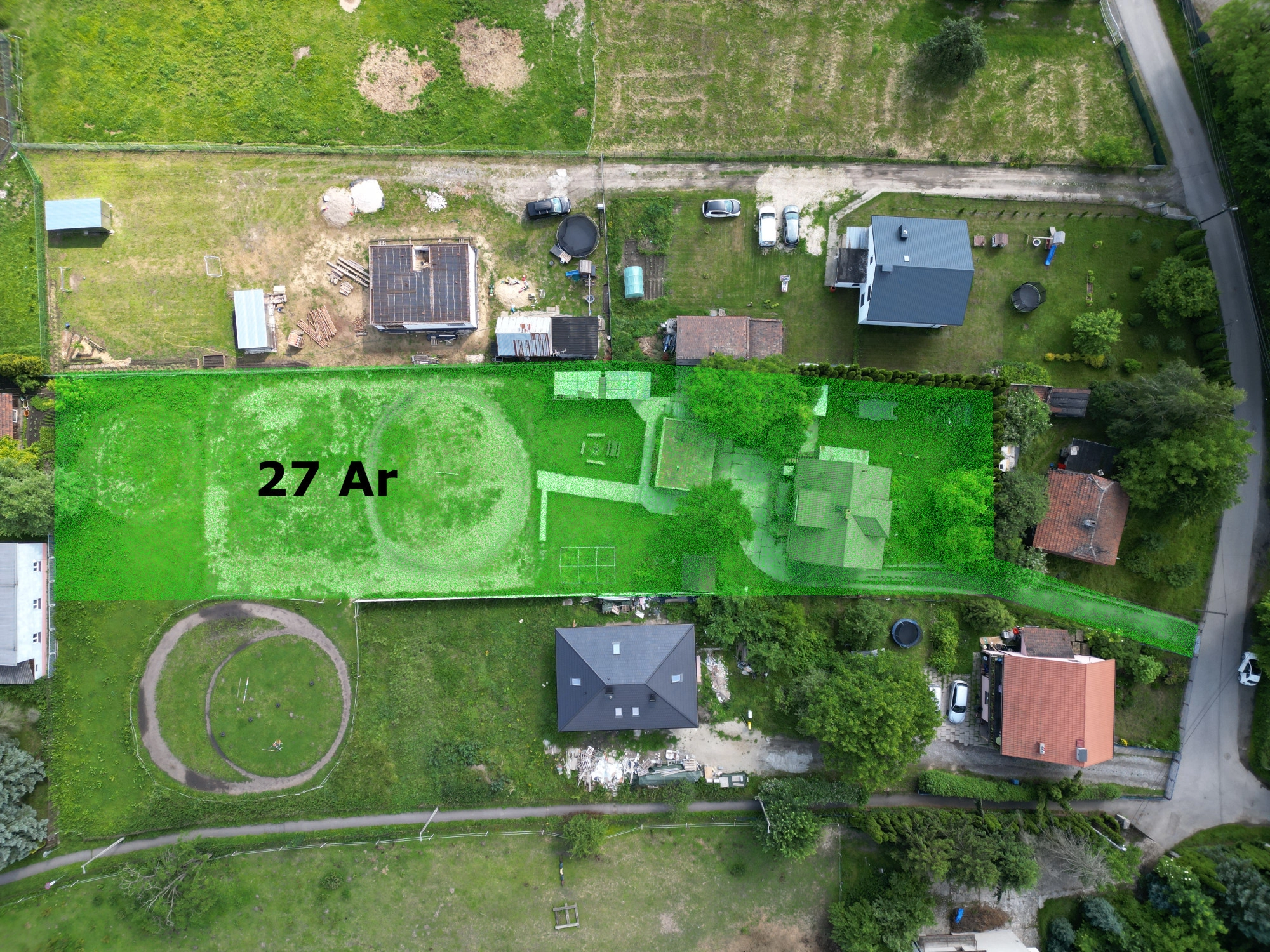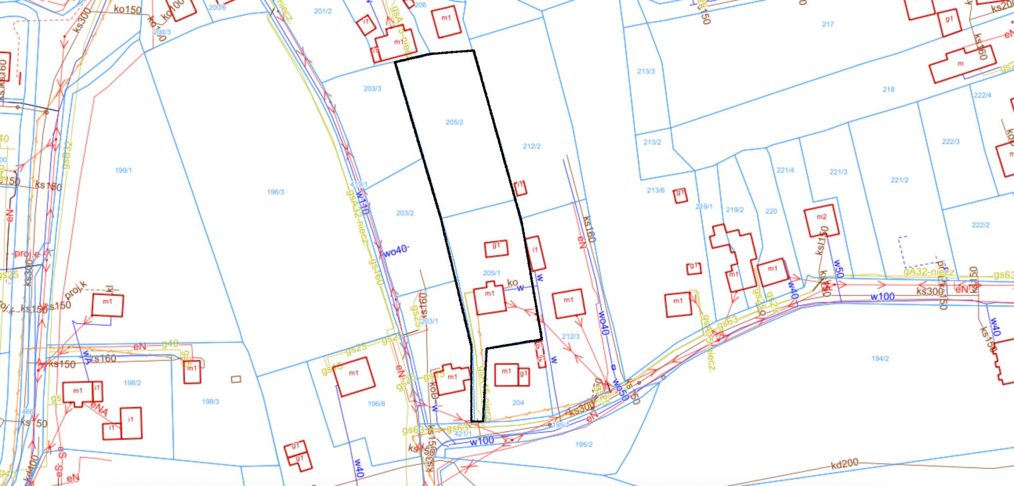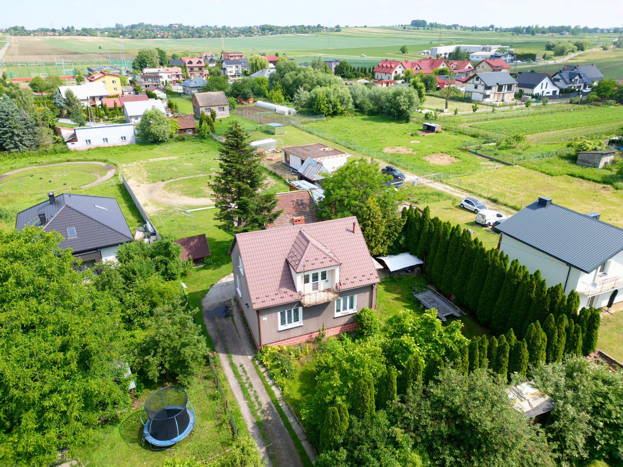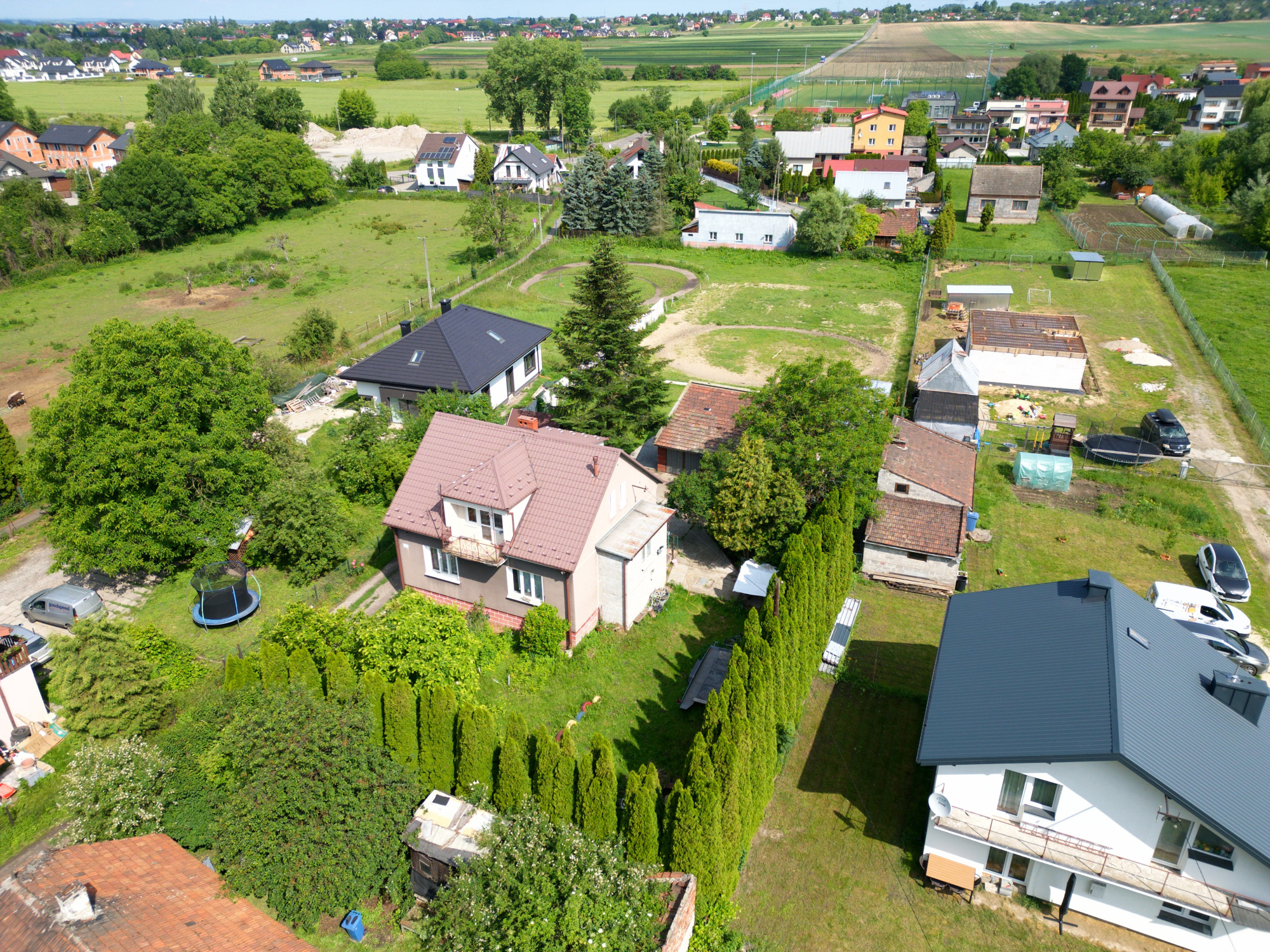 Na działce znajduje się istniejący budynek mieszkalny – do remontu lub rozbiórki – który stanowi istotne ułatwienie formalne w kontekście dostępu do mediów (prąd, gaz, woda, kanalizacja).