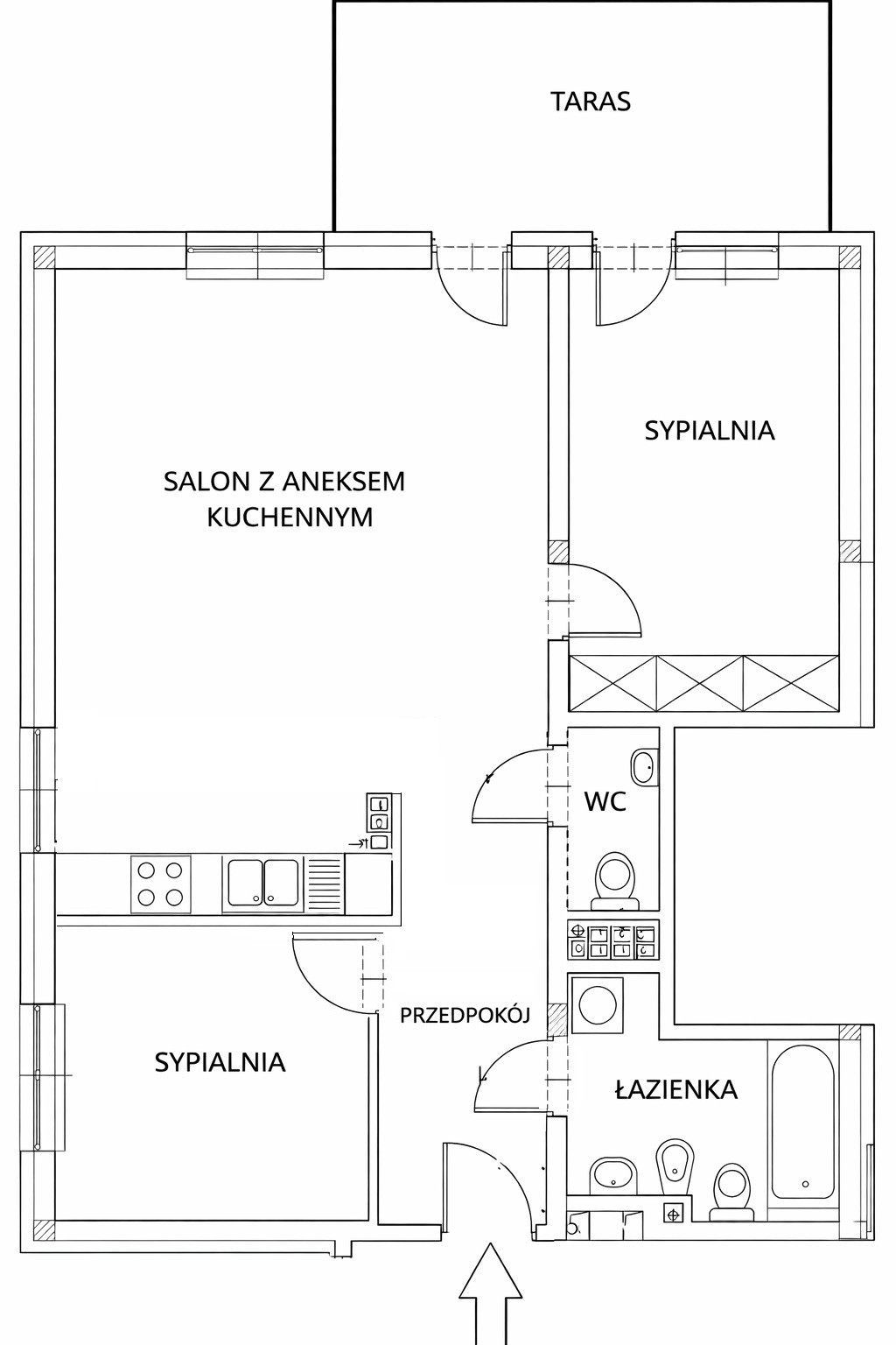 – 2 sypialnie ( w tym z jednej wyjście na taras)