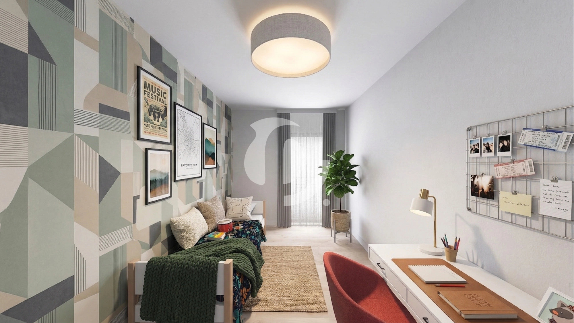 • Wygodna sypialnia 2 o powierzchni 12,25 m² z wyjściem na balkon.
