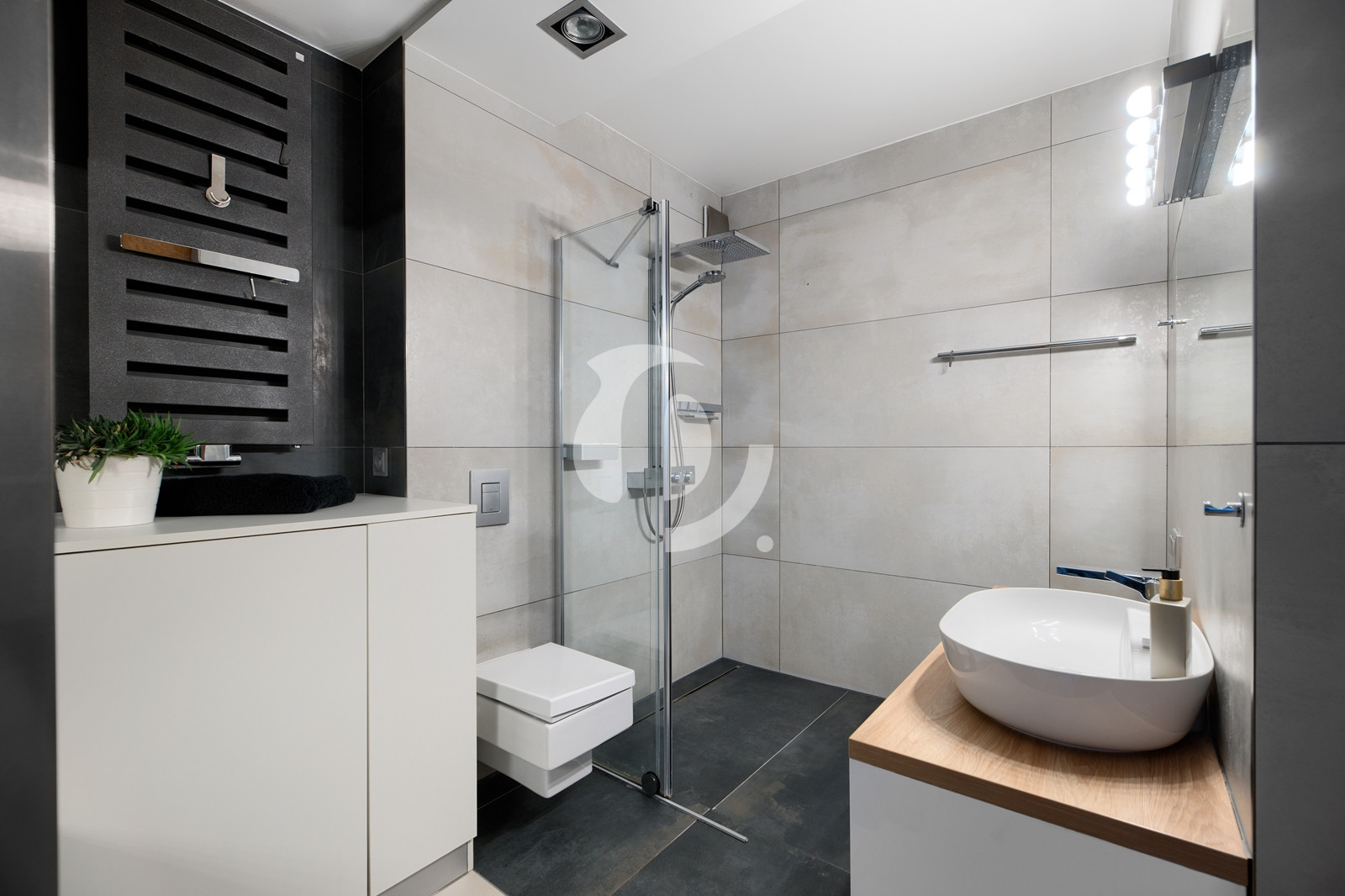 Wykończenie klasy Premium: W łazience armatura Hans-Grohe i Kueco, ceramika Duravit oraz grzejnik Zehnder. Kuchnia to biały połysk na osprzęcie Blum z niezawodnym AGD (Bosch, Haier).
