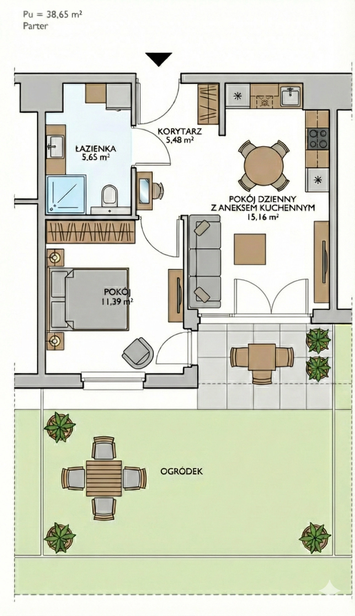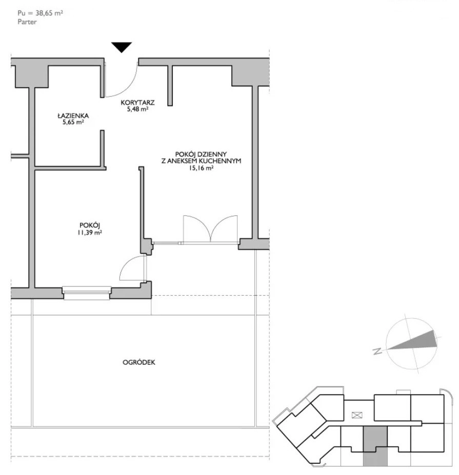 • Powierzchnia użytkowa: 38,65 m²