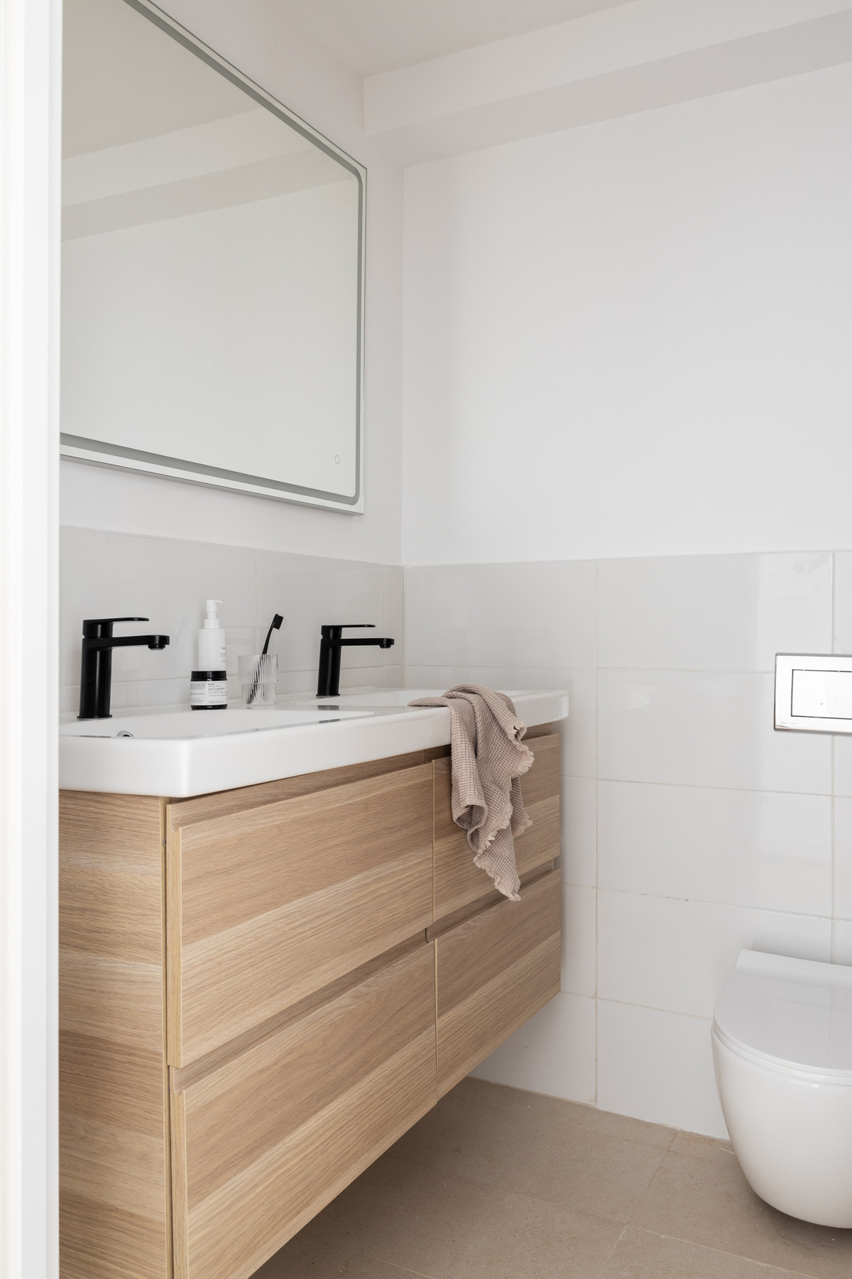 - elegancka łazienka w układzie „Jack & Jill” z podwójną umywalką i dwoma natryskami.