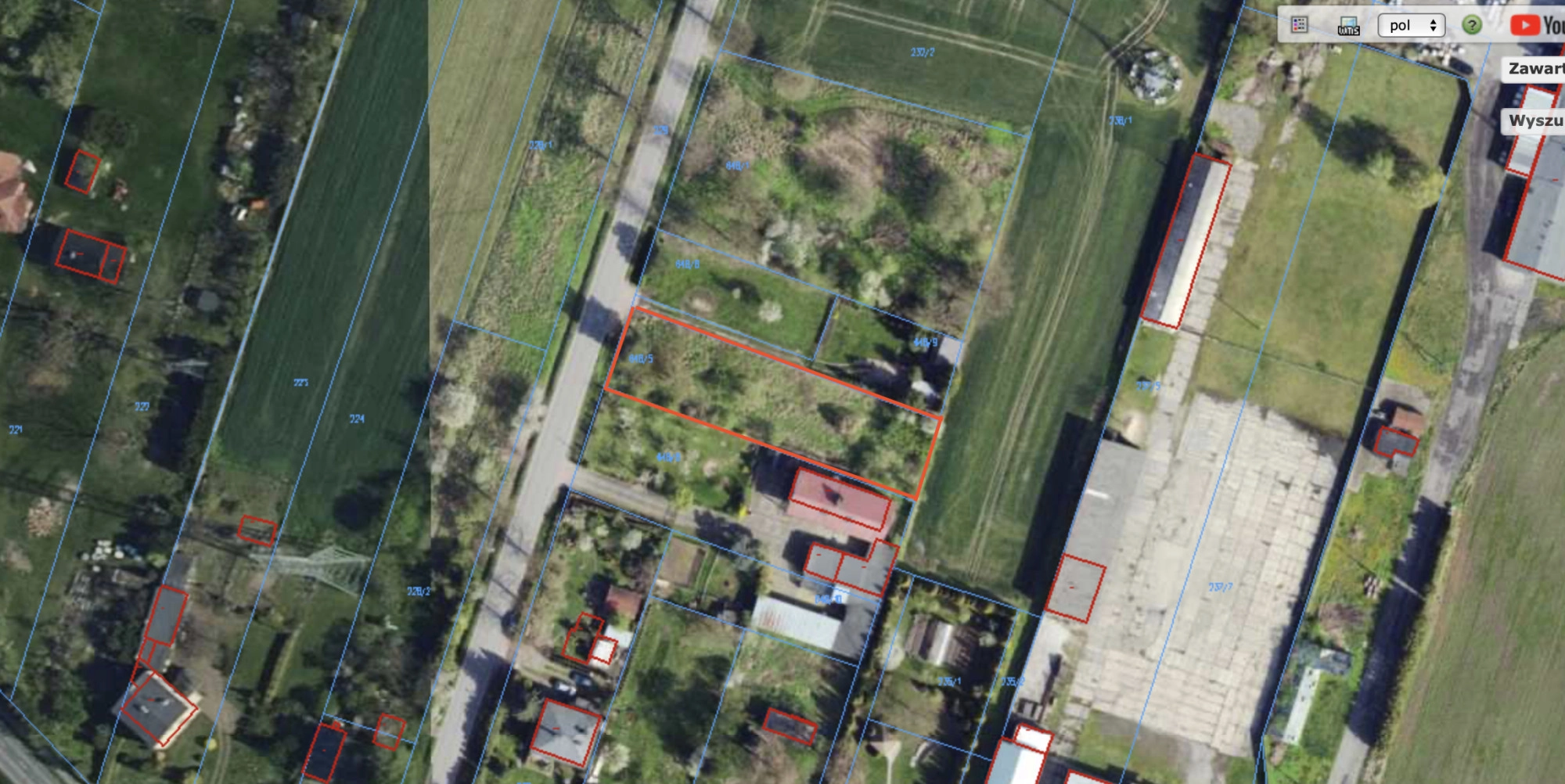 Działka ma regularny kształt, o wymiarach: szerokość – 16 m, długość – 63 m.