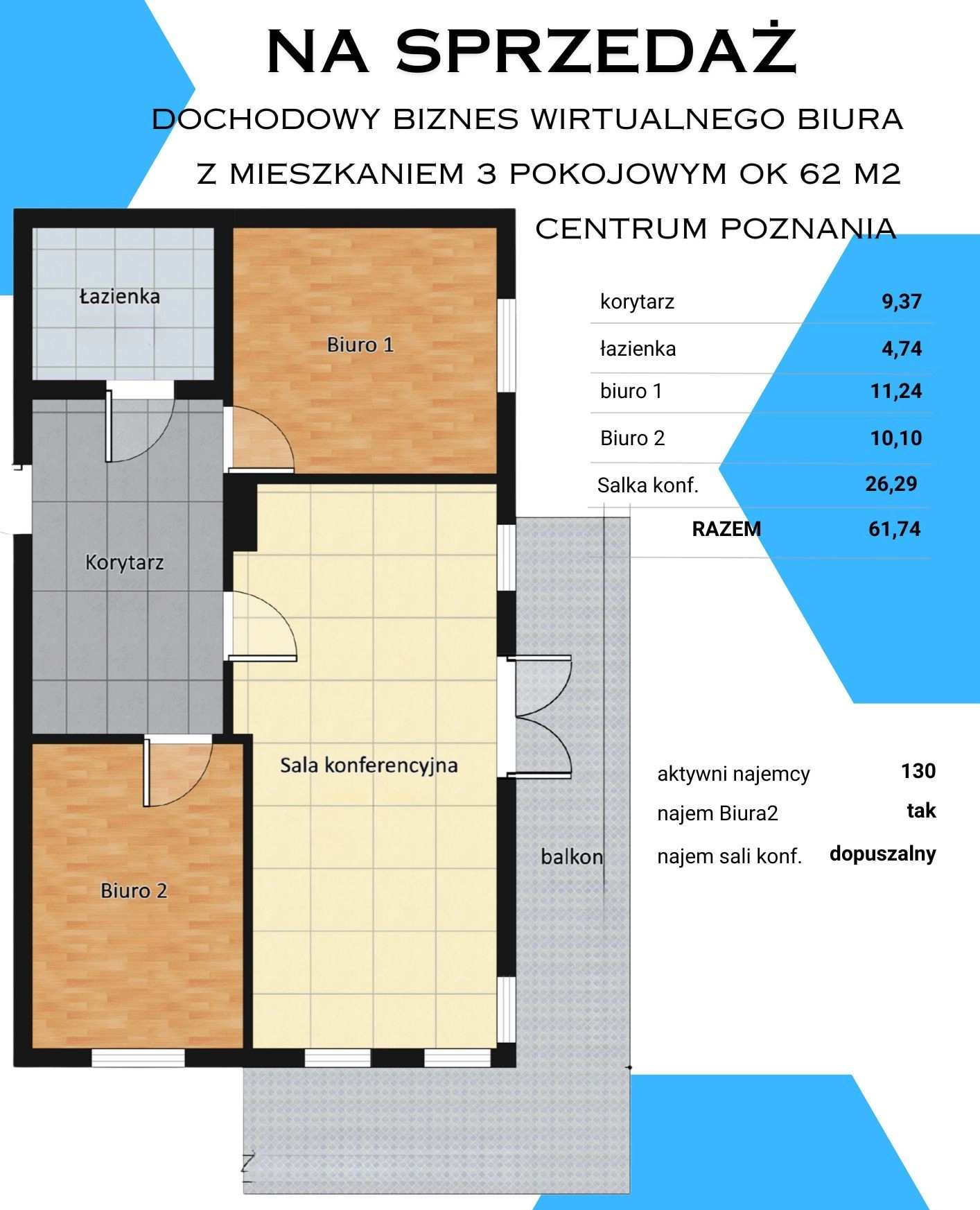 W ścisłym centrum Poznania na sprzedaż unikalny pakiet – 3-pokojowe mieszkanie w nowym budownictwie wraz z dochodowym, świetnie prosperującym biznesem wirtualnego biura.