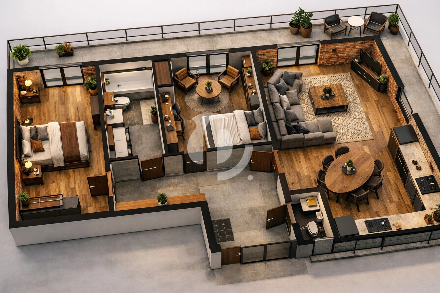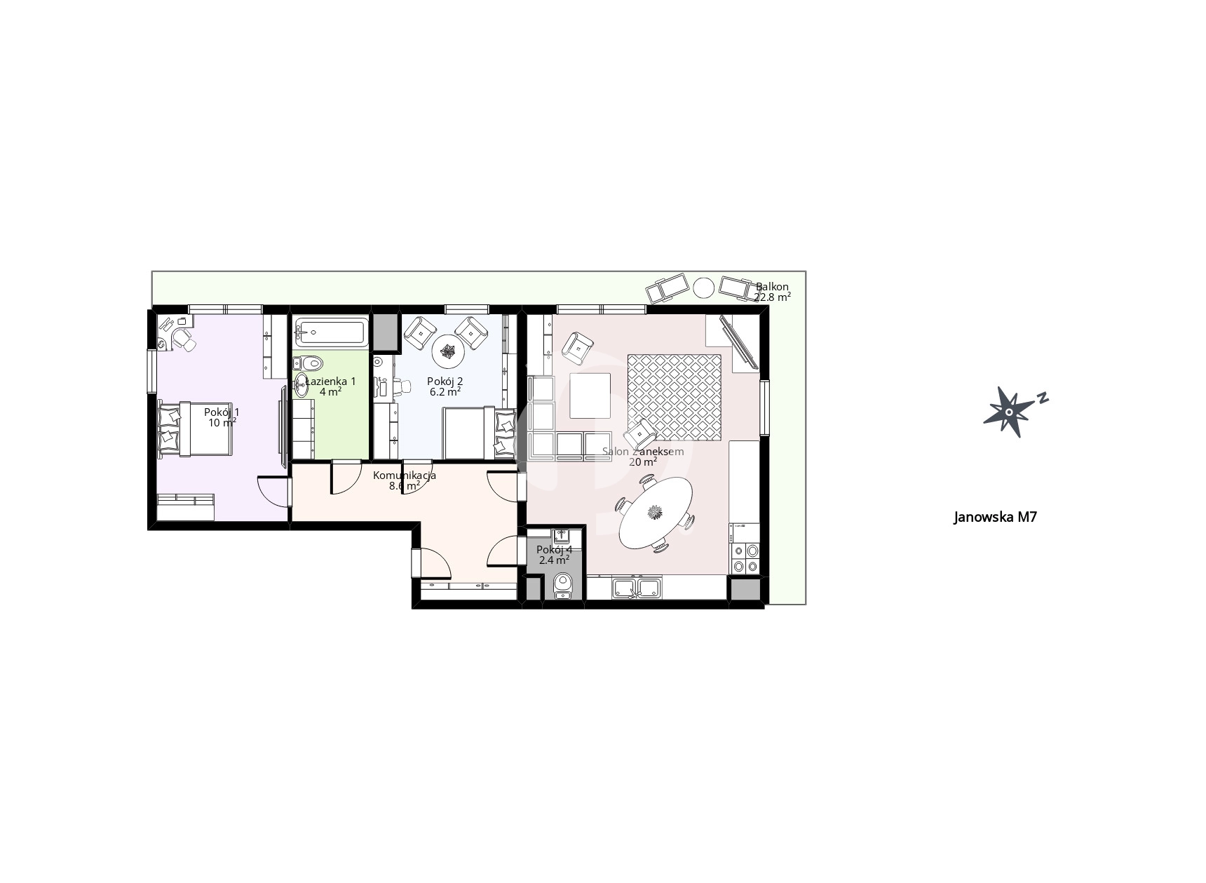 Układ mieszkania został zaprojektowany tak, aby zapewnić wygodę na co dzień i jak najlepiej wykorzystać dostępną przestrzeń. Przestronny salon z kuchnią stanowi funkcjonalne centrum mieszkania – miejsce do odpoczynku, spotkań i wspólnego spędzania czasu. Dwa dodatkowe pokoje dają szerokie możliwości aranżacyjne i mogą pełnić funkcję sypialni, pokoju dziecięcego, gabinetu lub pokoju gościnnego. Dodatkowym atutem jest osobne WC oraz imponujący balkon, który świetnie sprawdzi się jako miejsce do odpoczynku.