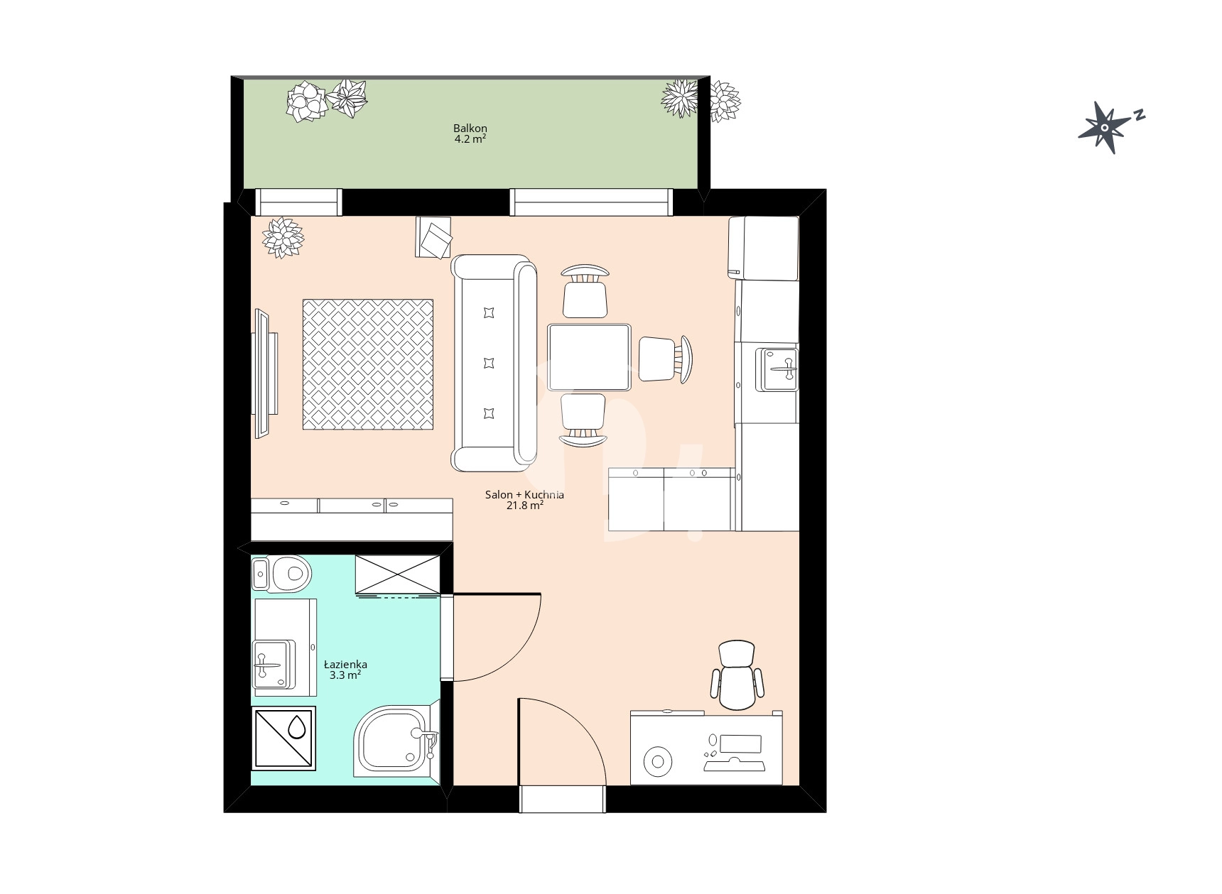• Powierzchnia użytkowa: 25,13 m²