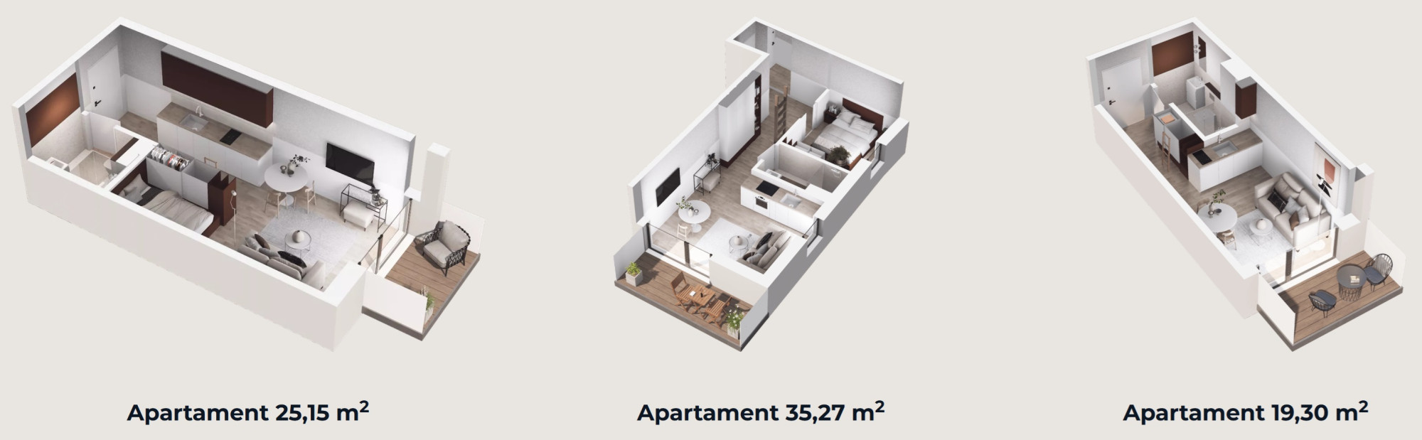 • Kompaktowy metraż, wysoka rotacja – małe, funkcjonalne apartamenty są łatwe do wynajęcia i utrzymania, co przekłada się na stabilny cash flow.