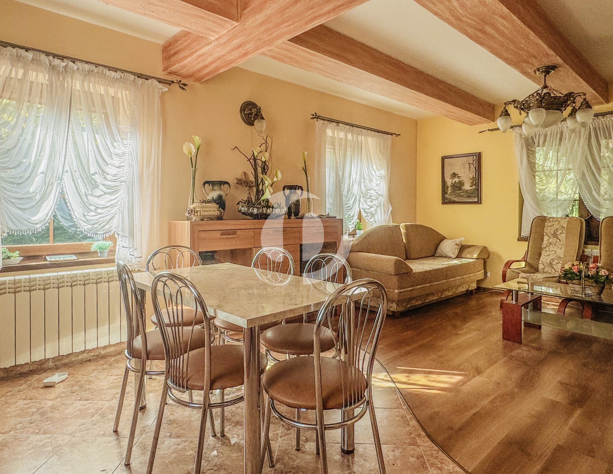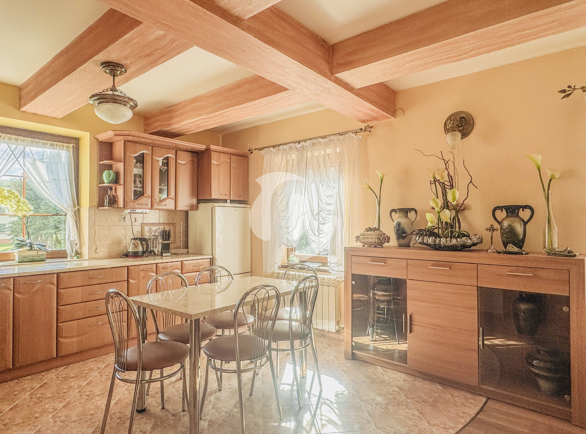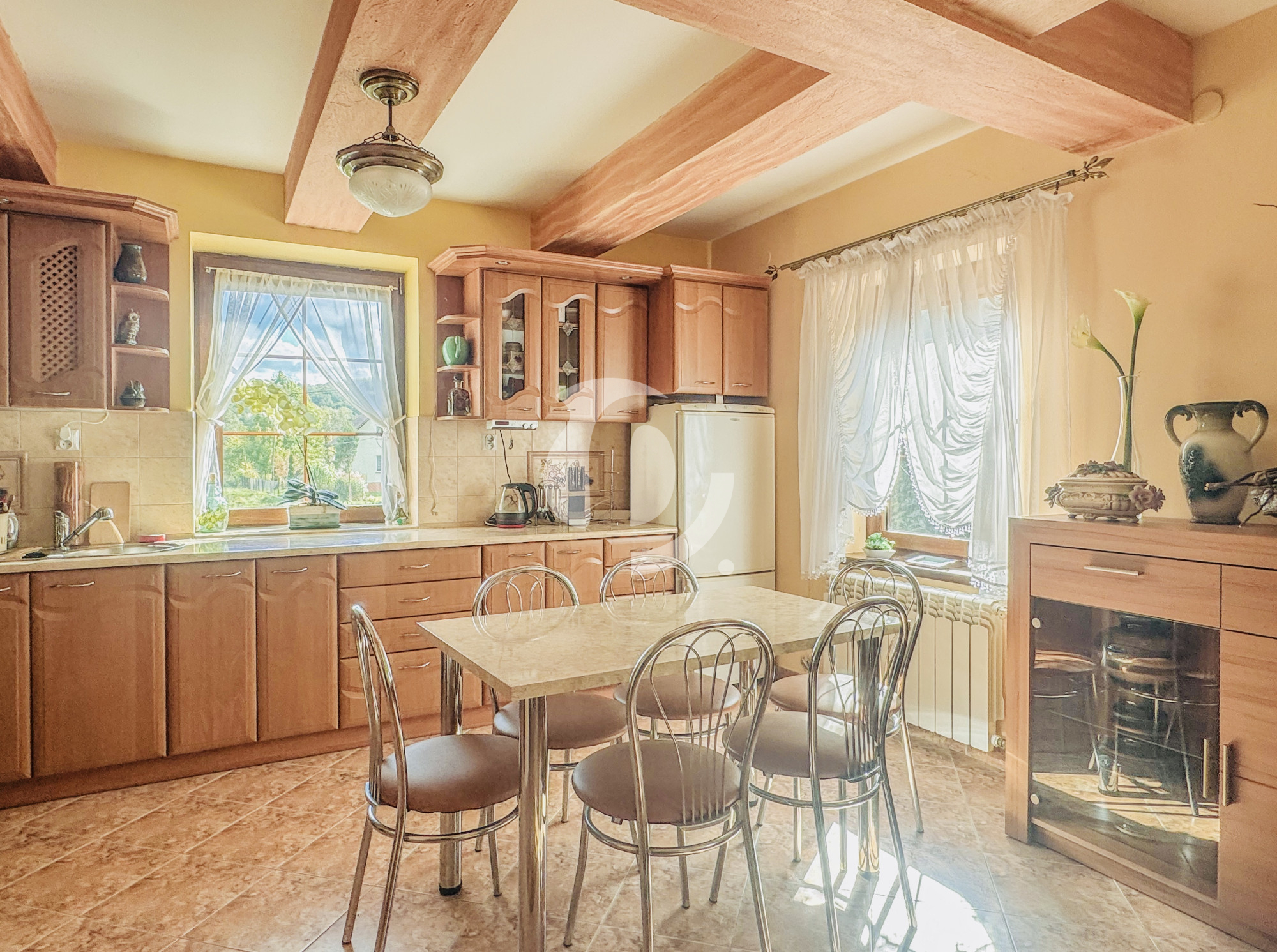 Dom o powierzchni użytkowej ok. 140 m² został wybudowany w latach 60., a w latach 2019-2022 przeszedł gruntowny remont, który nadał mu nowy blask i współczesny standard przy zachowaniu oryginalnego, drewnianego klimatu. Budynek został ocieplony wełną mineralną (10 cm), podniesiony, a dach całkowicie wymieniono. Zaadaptowane poddasze tworzy dziś przytulną strefę mieszkalną z nowymi pokojami i łazienką.