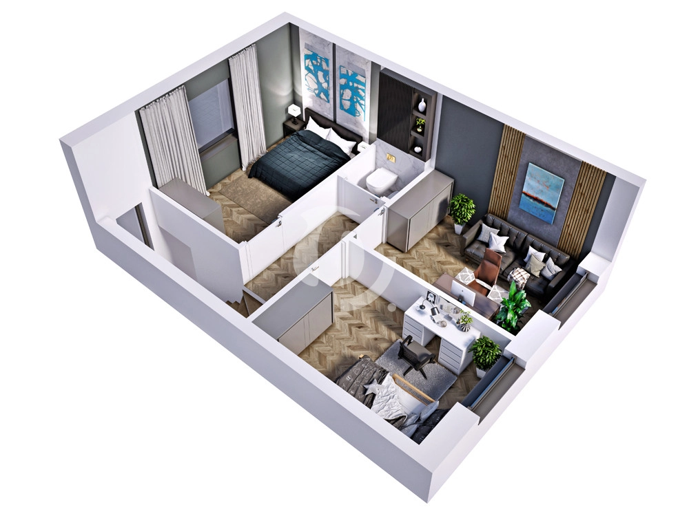 Mimo niedużej powierzchni lokale zostały bardzo funkcjonalnie zaprojektowane a na 66m2 powierzchni użytkowej wydzielono: