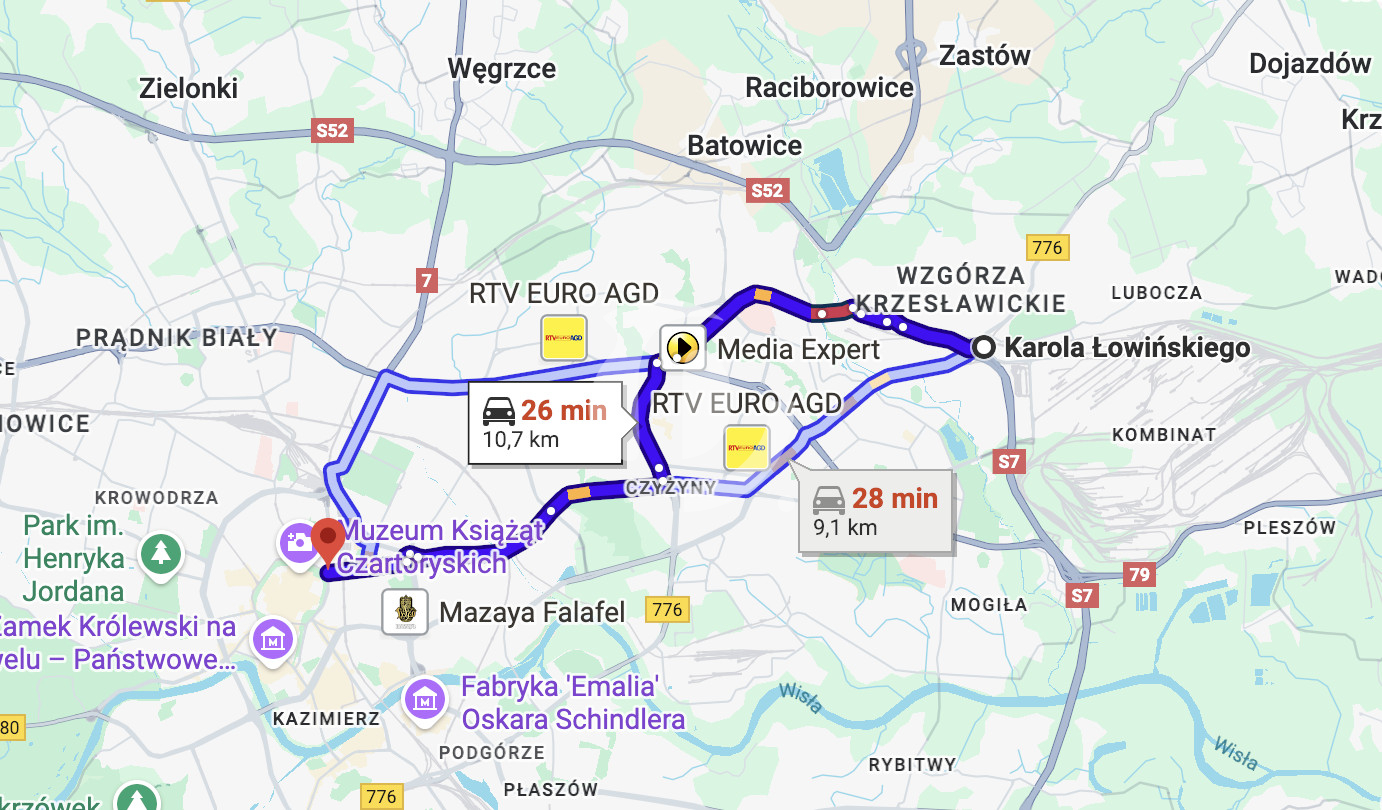 – szybki dojazd samochodem — budowany i modernizowany węzeł drogowy S7 / Węzeł Grębałów znacząco poprawia komunikację w tym rejonie