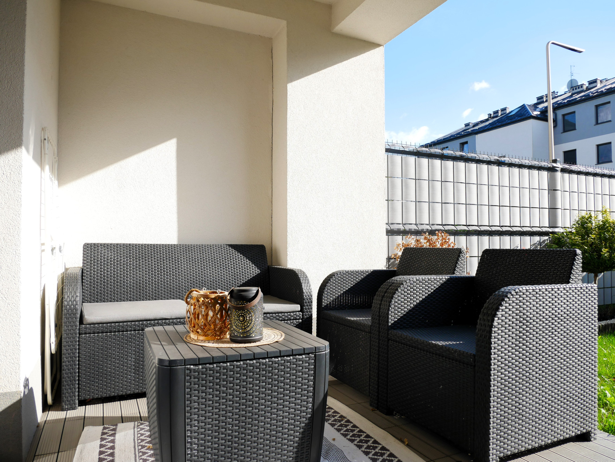 – taras z wyjściem na prywatny ogródek – łącznie ok. 22 m2, na którym można w spokoju zaczerpnąć powietrza, napić się kawy lub poczytać książkę