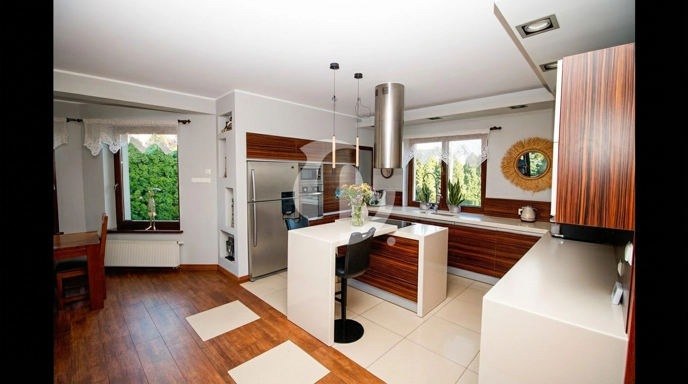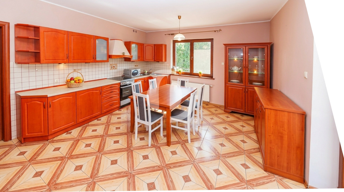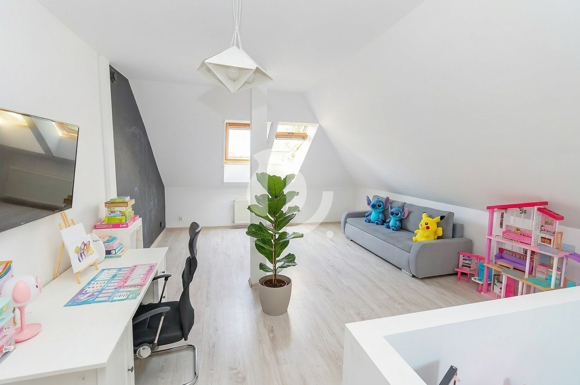 W bryle także osobne mieszkanie 2-pokojowe (dla dziadków? na biuro?), garaż dwustanowiskowy i piwnica ponad 50 m2 (sauna? siłownia? chill room?). Dom idealny dla dużej rodziny, dwóch pokoleń i osób pracujących z domu.