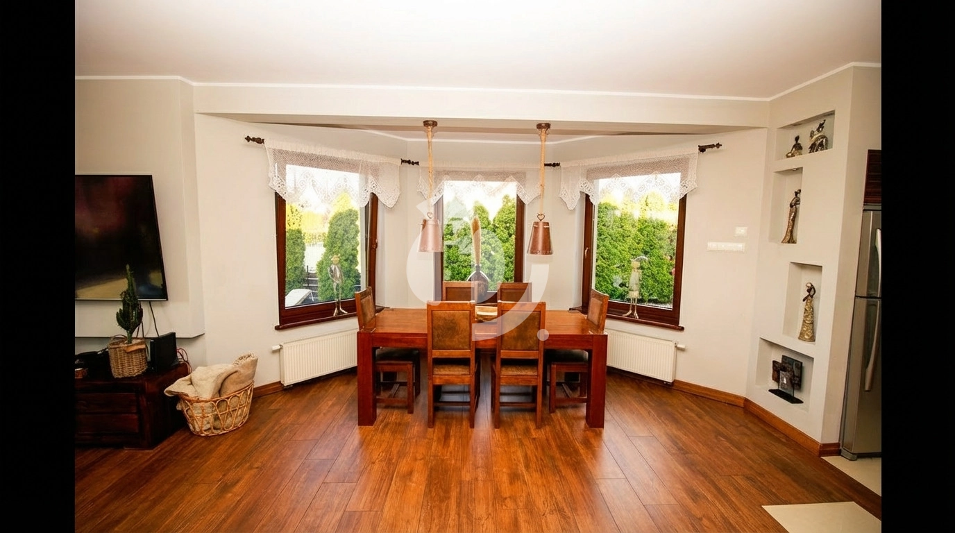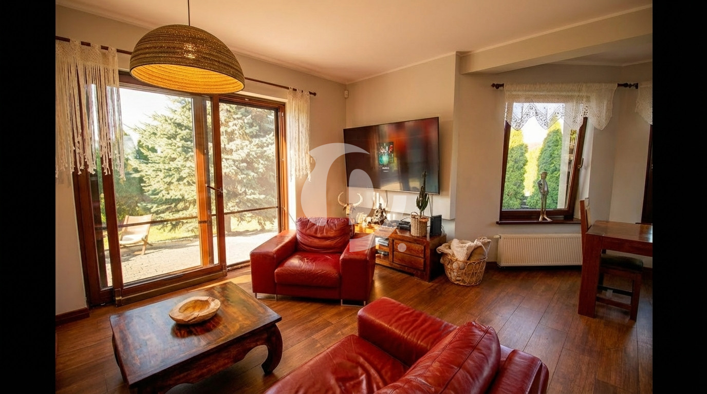 Dom z 2010 r., technologia tradycyjna, ogrzewanie z nowoczesnej i ekonomicznej kotłowni, fotowoltaika 7,92 kW. Wysoka jakość wykończenia, nowa łazienka na piętrze, zabudowa kuchni. W części dziennej salon z aneksem (55 m²), gabinet; na piętrze trzy olbrzymie sypialnie, w tym pokój małżeński z łazienką i garderobą.
