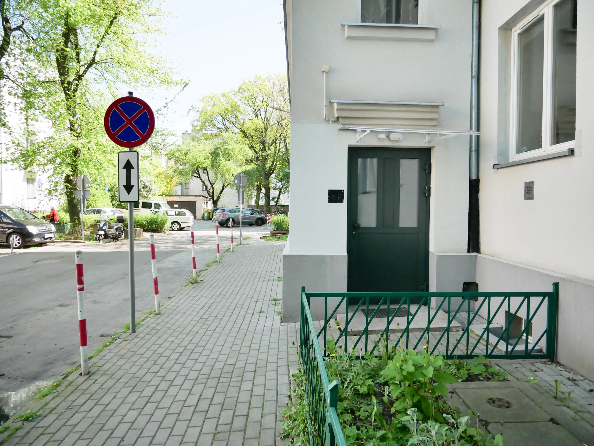 spokojna, zielona ulica – dużo drzew i niska zabudowa