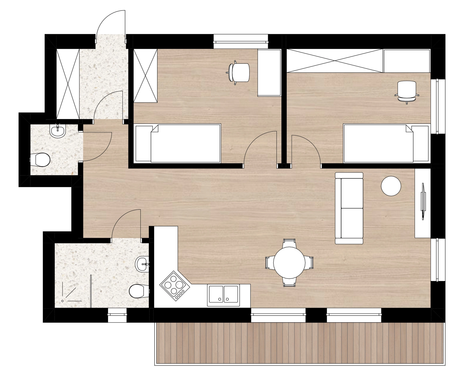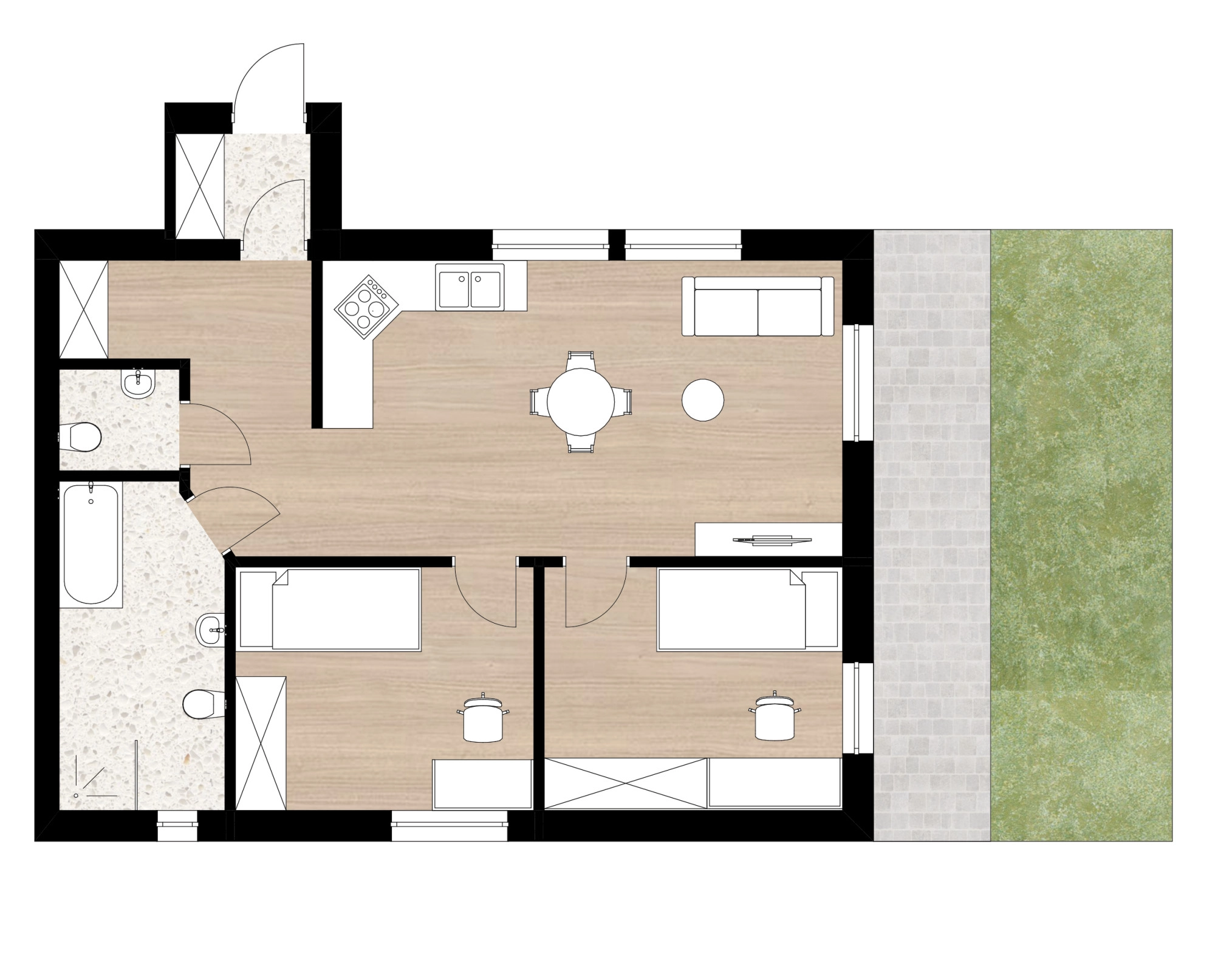 Każde mieszkanie stanowi odrębny lokal z bezpośrednim, niezależnym wejściem z zewnątrz, co zapewnia komfort podobny do domu jednorodzinnego.
