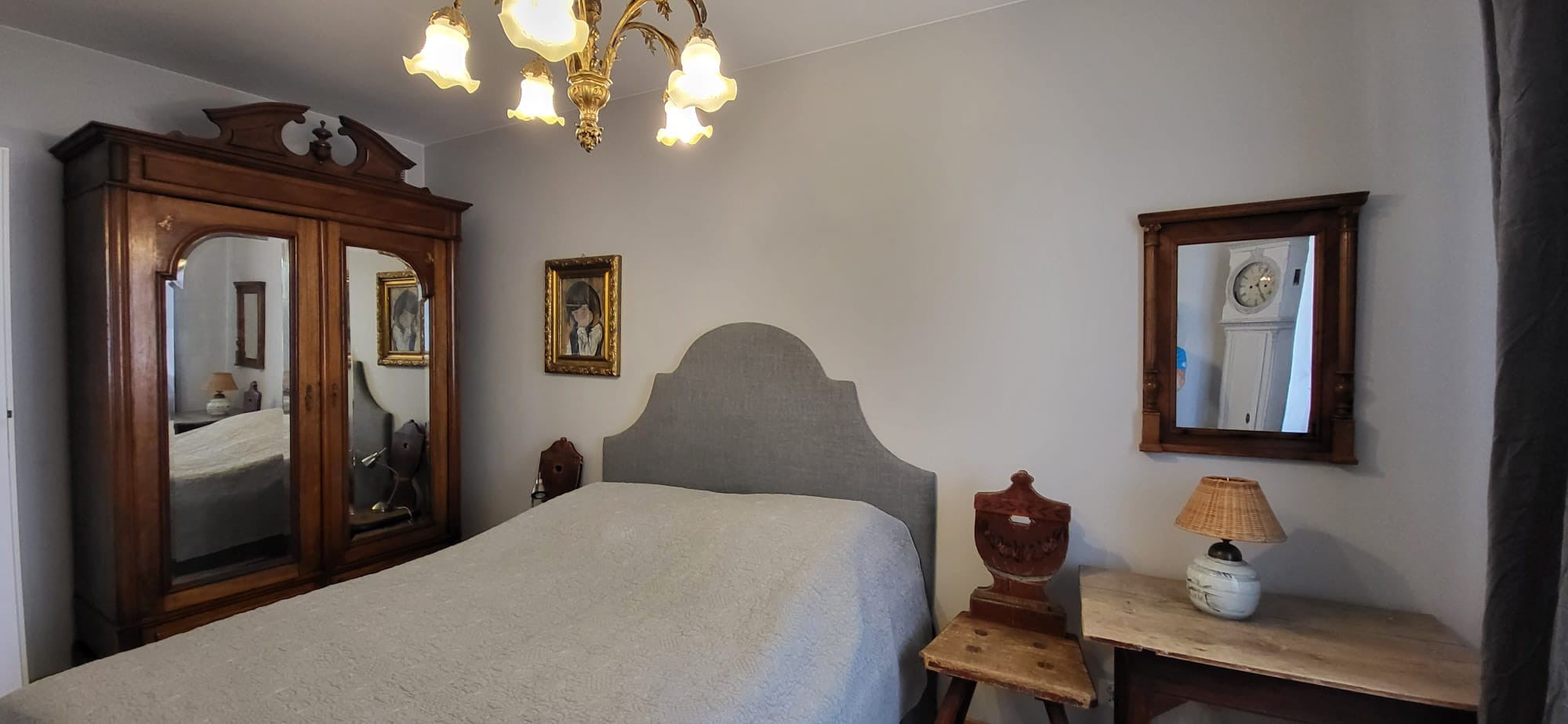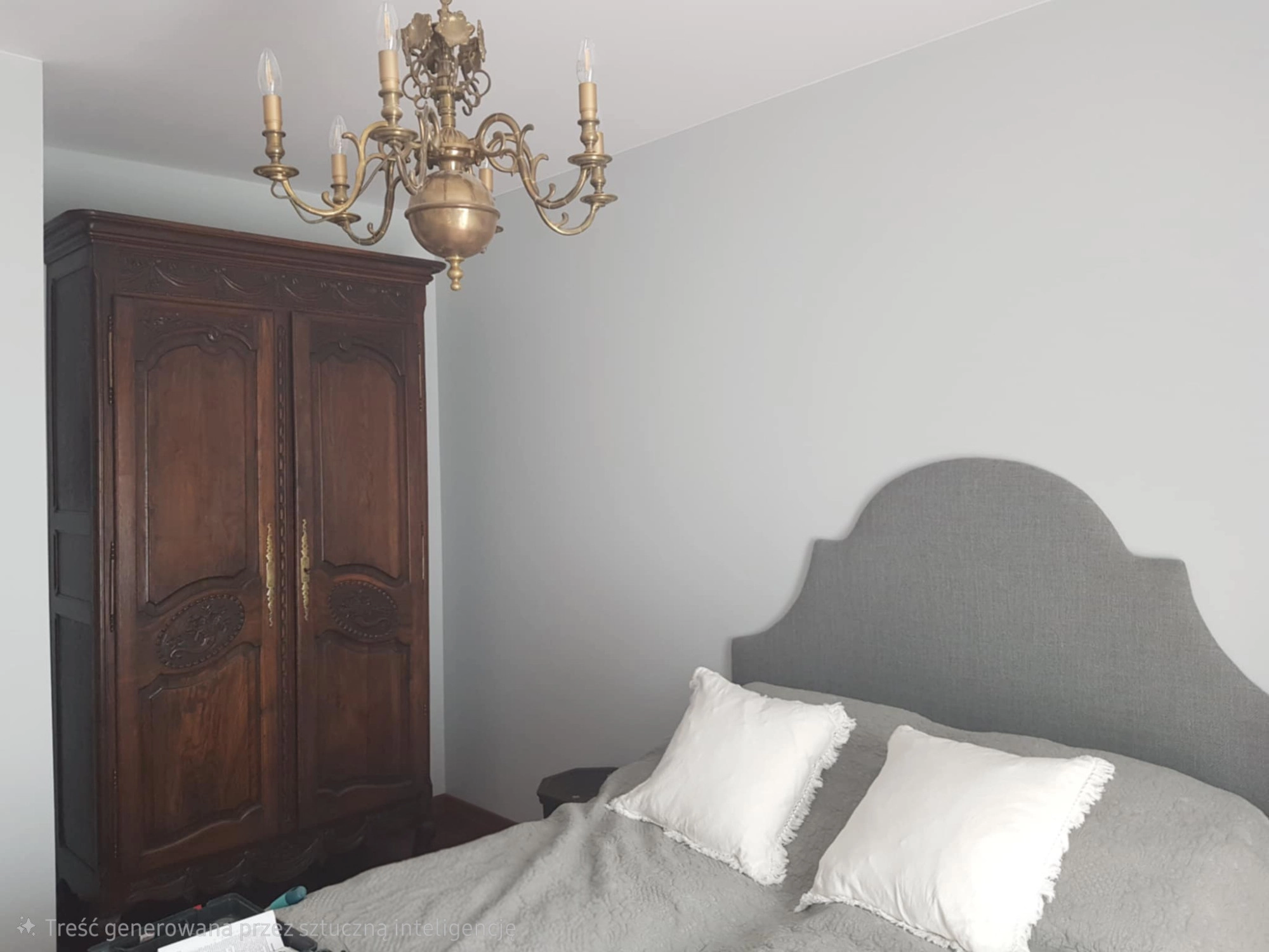 • Pokój 3 (Sypialnia): 18,73 m² – wyposażony w duże, drewniane szafy o historycznym charakterze oraz łóżka z tapicerowanymi zagłówkami.