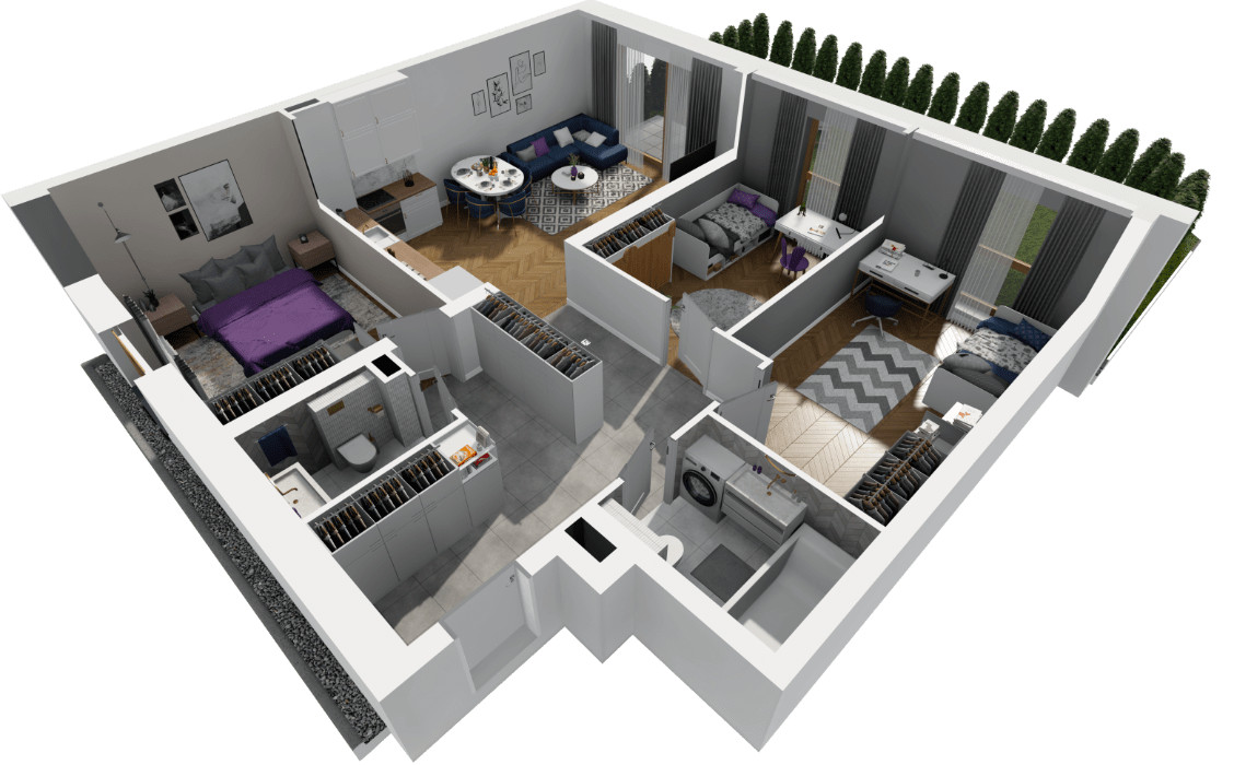 Mieszkanie wyposażone jest w nowoczesny system automatyki domowej. Za pomocą aplikacji mobilnej lub panelu możesz sterować oświetleniem, ogrzewaniem oraz zaworami wody. To nie tylko wygoda, ale także realne oszczędności na rachunkach (nawet do 30% w skali roku).