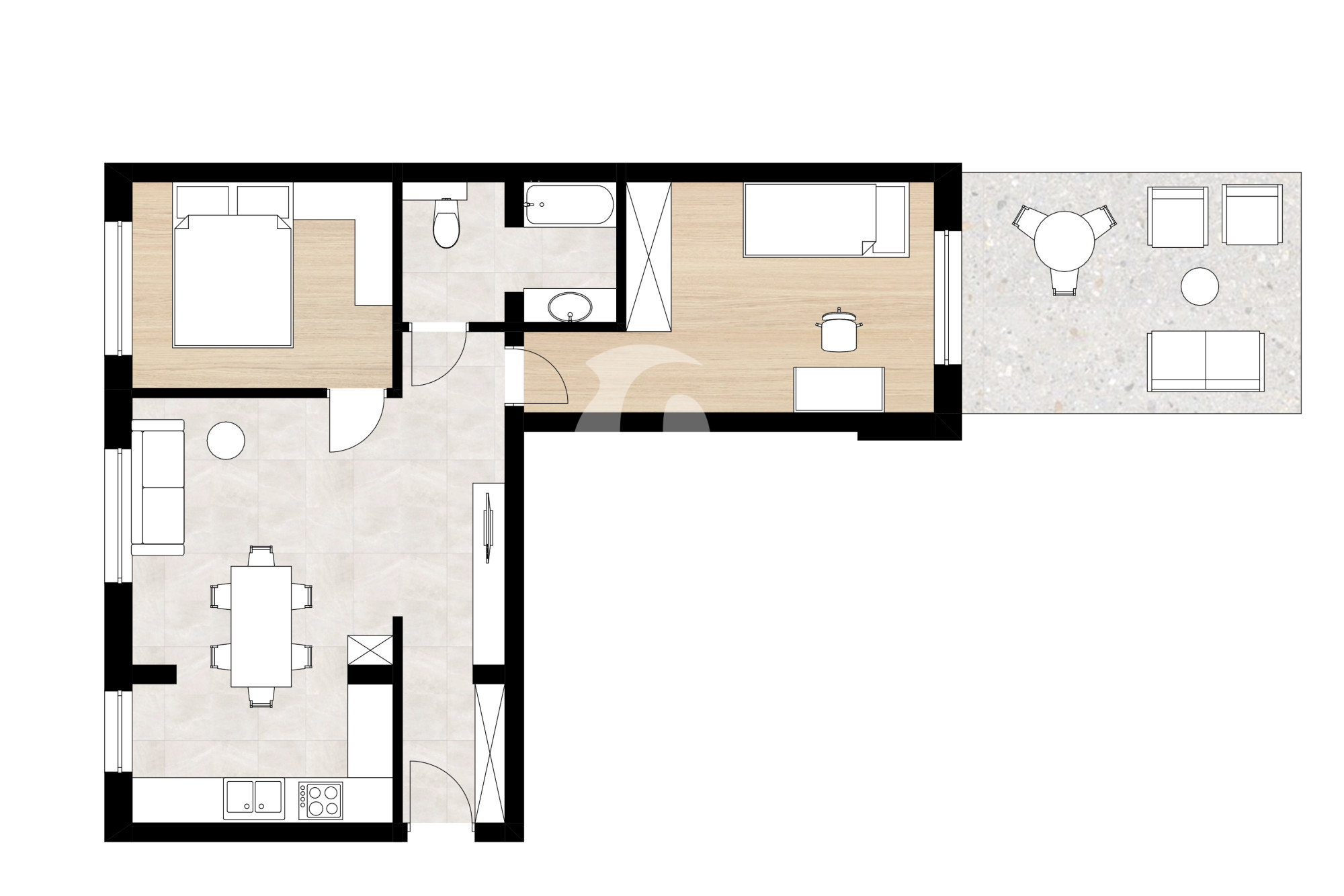 - przestronny salon z kuchnią i jadalnią