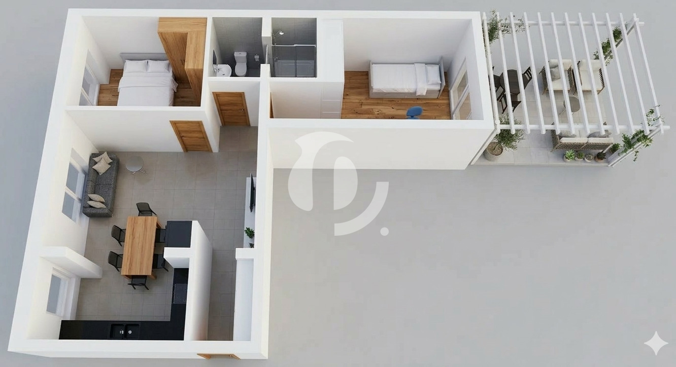 - taras 14 m² z pergolą
