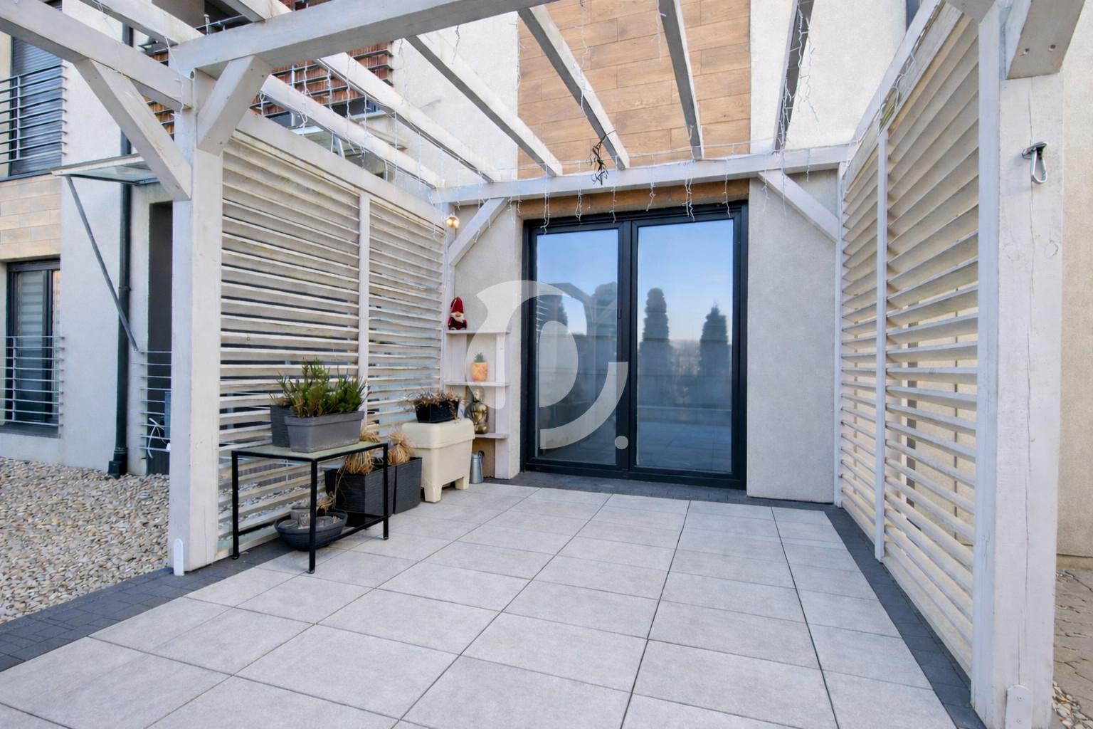 - taras z pergolą