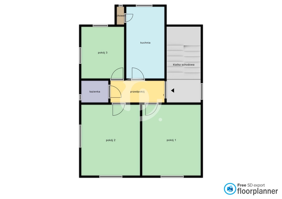 – trzech przestronnych, niezależnych pokoi (w tym jeden z balkonem),