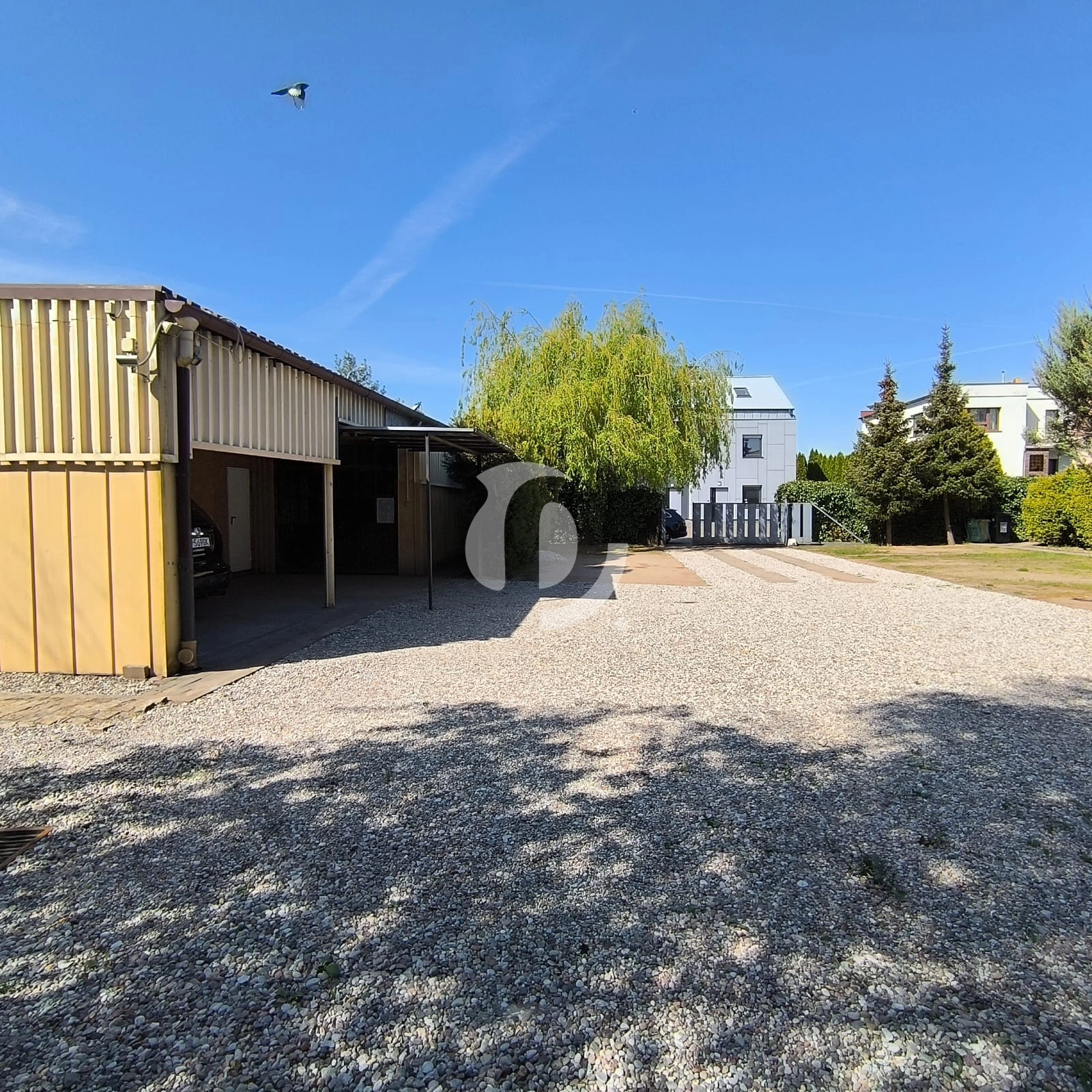 Budynek typu blaszak znajduje się na ogrodzonej działce o powierzchni ok 600 m2 i składa się z 2 części:
